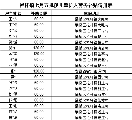 【孤儿补助】栏杆镇2025年7月发放孤儿监护人劳务补贴情况