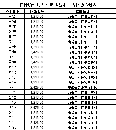 【孤儿补助】栏杆镇2025年7月发放孤儿基本生活补助情况