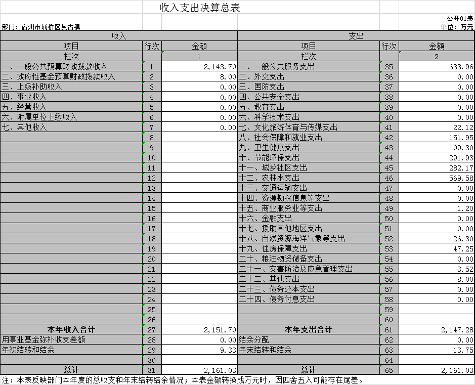 【上年度财政预算执行情况】灰古镇2019年度财政预算执行情况