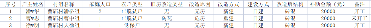 2023年度第一批危房改造项目信息统计表