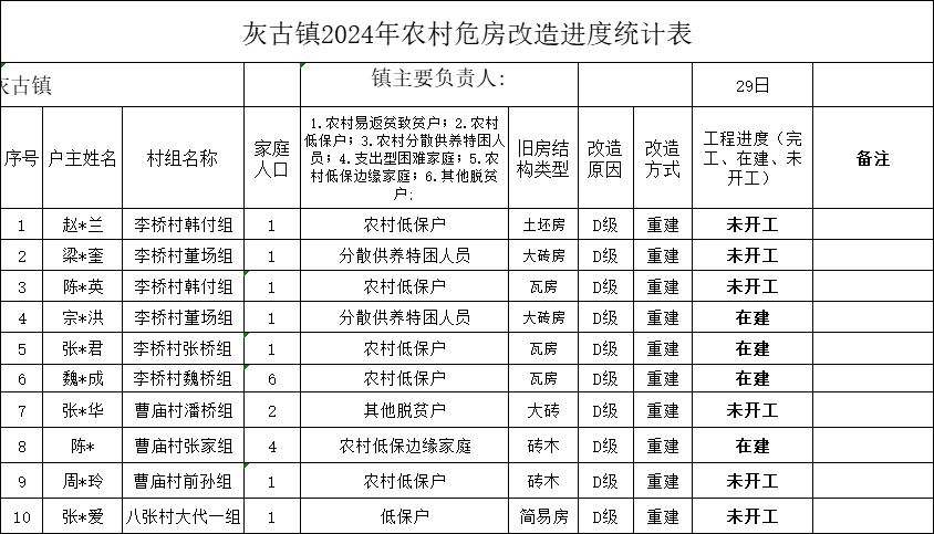 灰古镇2024年度第一批危房改造项目进度表