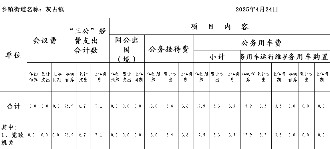 (灰古镇4月)2025年“三公”经费和会议费支出情况统计表