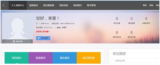 点击个人求职中心智能推荐,可查看系统按所填岗位类别自动匹配的单位和职位信息;