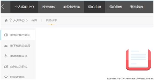 点击个人求职中心我的求职,可查看面试邀请、职位收藏以及被单位查看、下载过简历等情况。