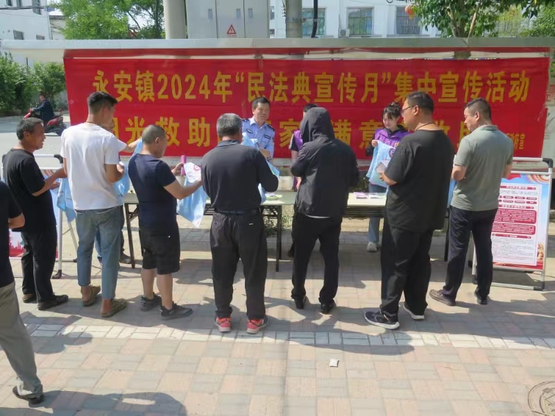 今年5月28日是《中华人民共和国民法典》颁布四周年纪念日,5月,也是我国第四个“民法典宣传月”,今年民法典宣传月的主题是“美好生活·民法典相伴”。5月17日上午,永安镇组织综治中心、司法所、民政所、社保所等部门在永安镇中心大街,集中开展民法典宣传活动,活动现场通过悬挂宣传横幅,摆放宣传台,发送民法典宣传彩页,宣传解答法律咨询等方式,向过往群众宣讲了《中华人民共和国民法典》,使广大群众了解到这是我国第一部以法典命名的法律,于2021年1月1日起施行。在法律体系中居于基础性地位,也是市场经济的基本法。它涵盖了物权、合同、人格权、婚姻家庭、继承、侵权责任等多个方面的内容,被称为“社会生活的百科全书”。此次宣传收到了很好的社会宣传效果。