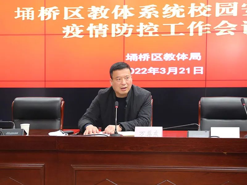 万尊东在主持会议时要求,抓牢思想防线,坚决克服麻痹思想和侥幸心理,夯实安全工作底线思维。抓住重点人群,强化教职工、后勤人员、学生、学生家长、保洁及临时施工人员和教职工家属健康管理,确保疫情防控全覆盖、无盲点。抓实细节微处,严格执行封闭管理,把好学校大门,做好晨午检、重点人群排查、重点场消杀、防疫物资储备等工作。抓紧预案演练,按照“一校一策”细化完善防控预案,开展校园疫情防控应急演练活动,进一步提高防控能力。抓好核酸检测,各校要按照上级部署,加强与卫健部门协作,确保核酸检测工作高效有序进行。抓严四方责任,加强督导督查,进一步压实疫情防控责任,以严明的纪律保障疫情防控各项措施落到实处。