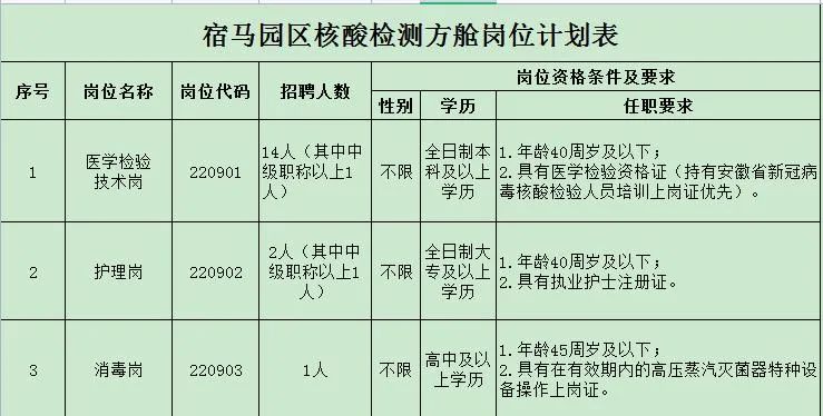 详见附件:宿马园区核酸检测方舱岗位计划表