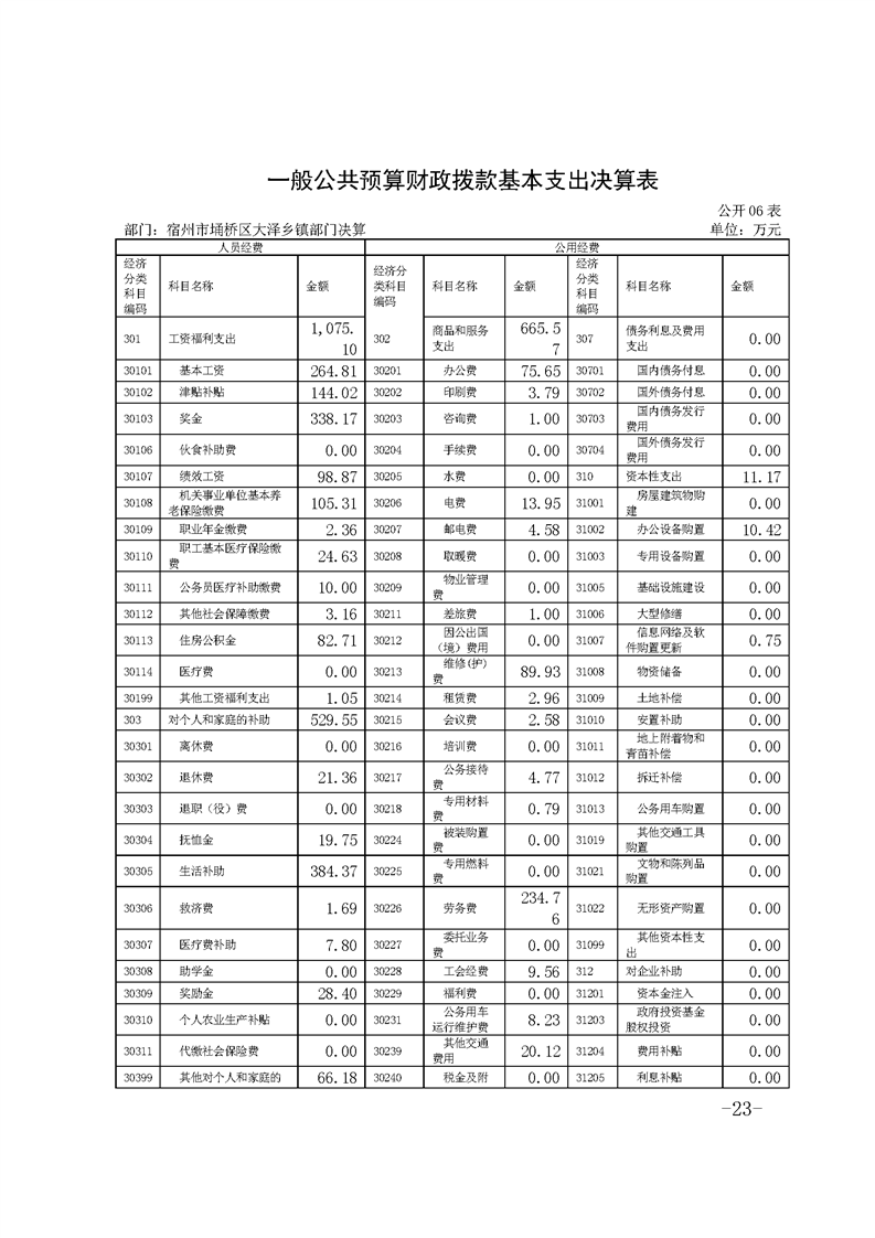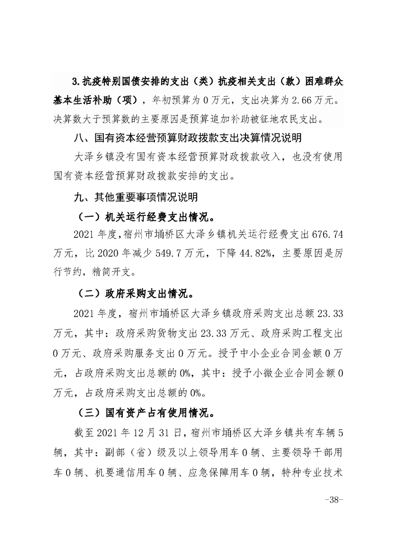 宿州市埇桥区大泽乡镇2021年度部门决算