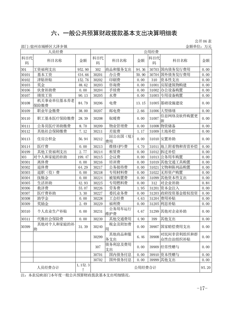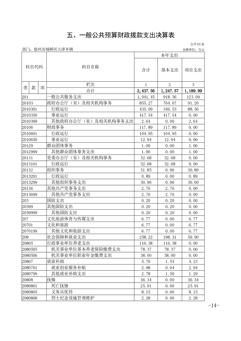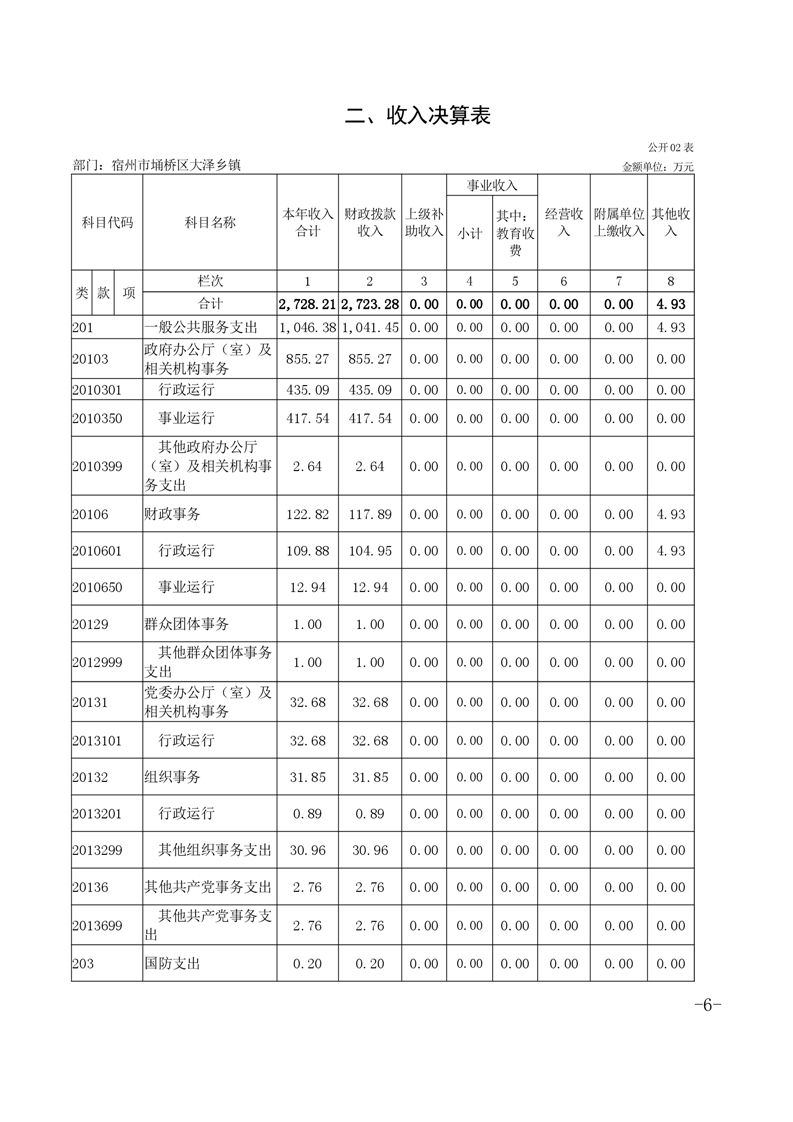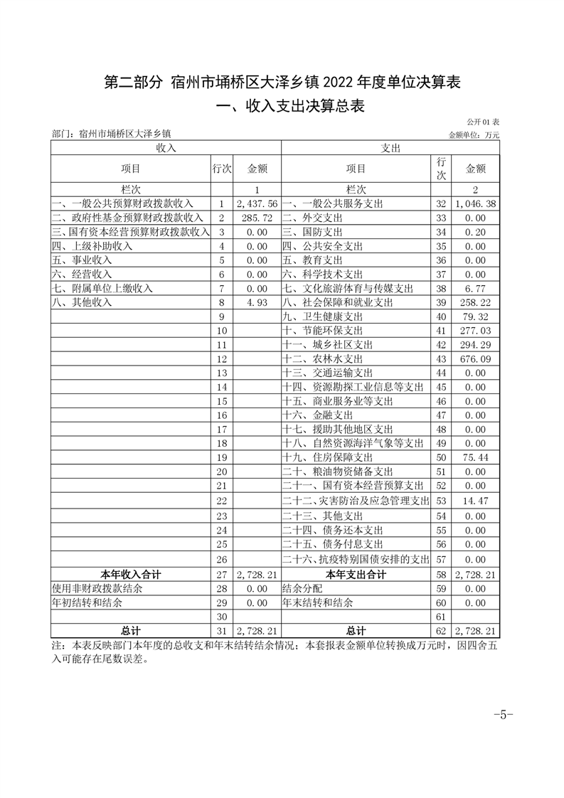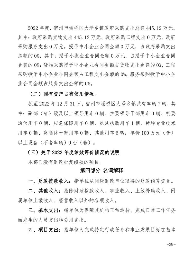 宿州市埇桥区大泽乡镇2022年度部门决算