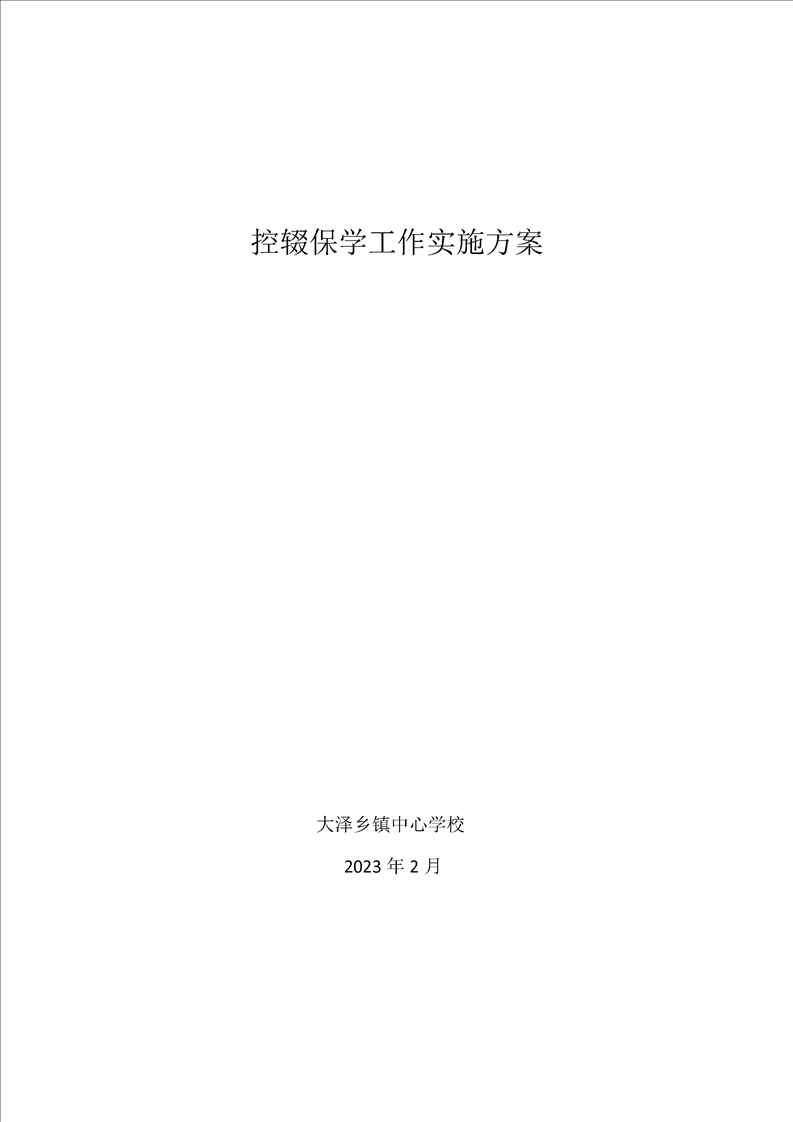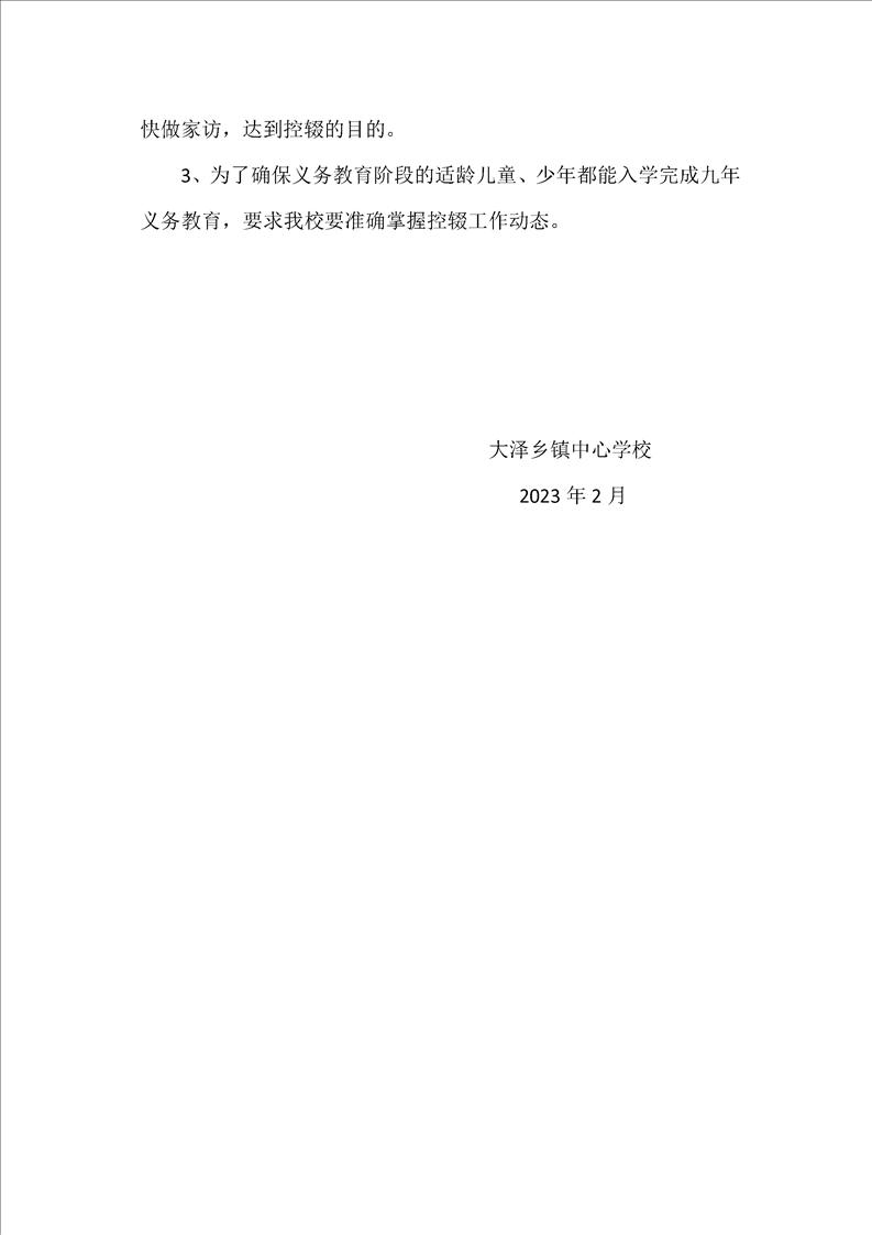 【控辍保学工作方案】大泽乡镇中心校2023年控辍保学工作方案