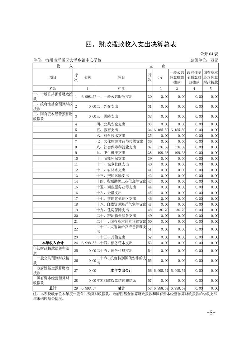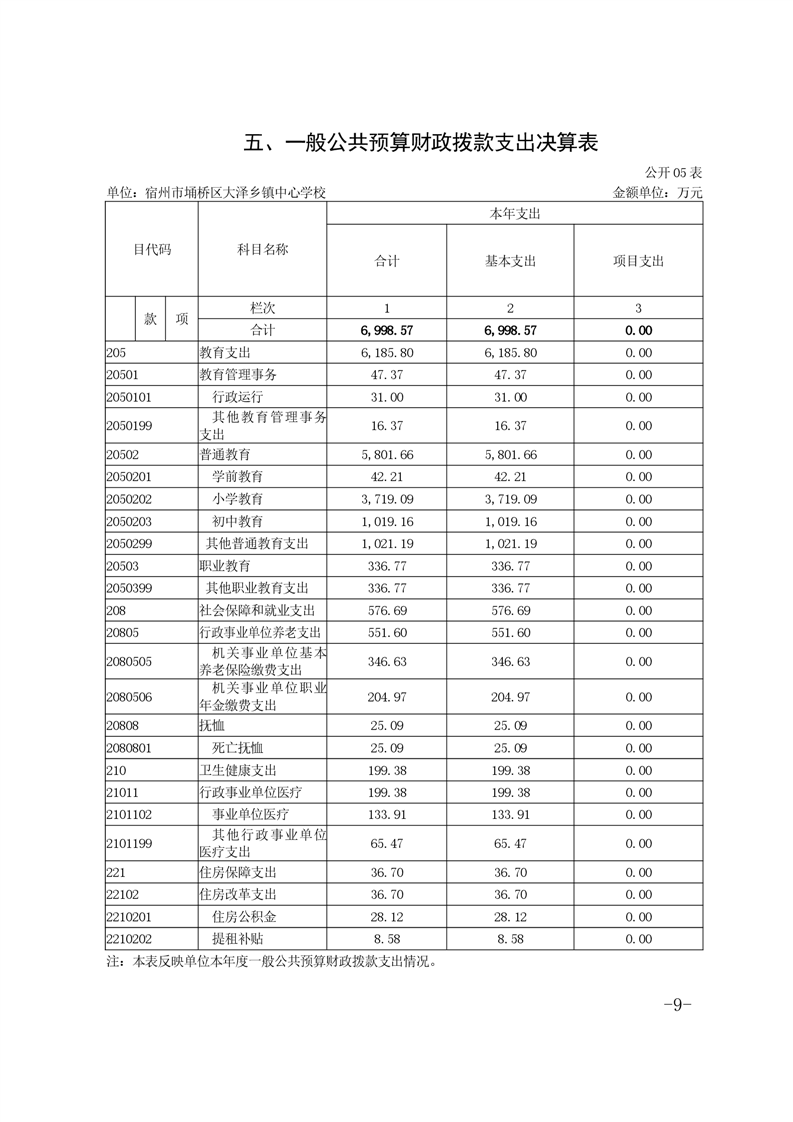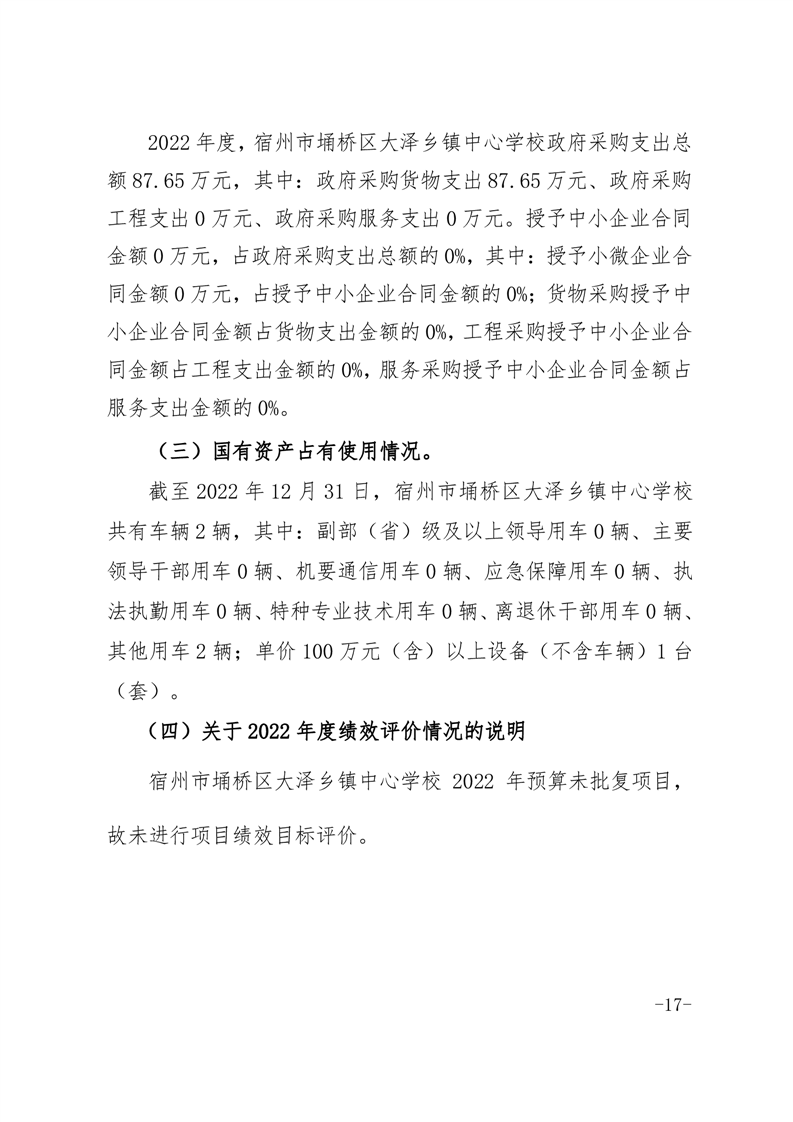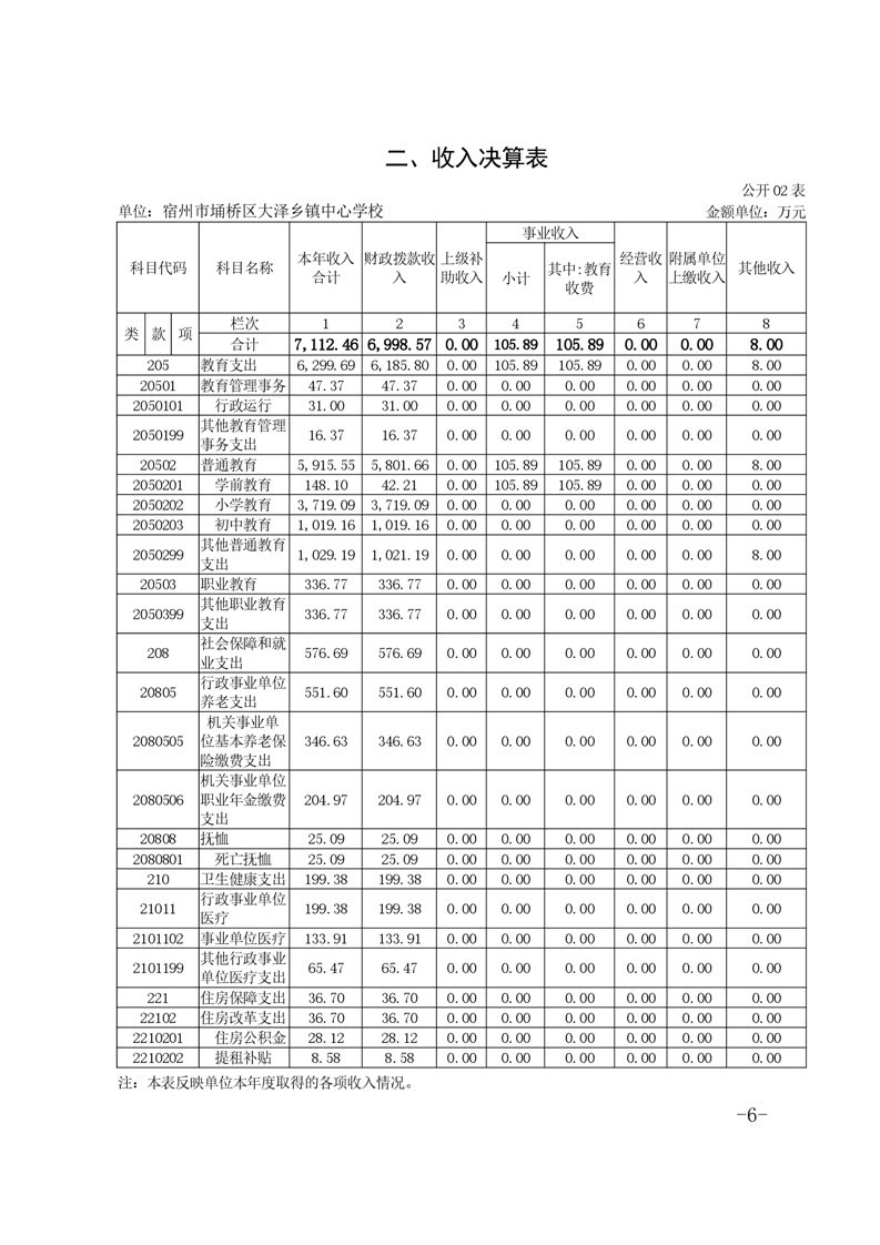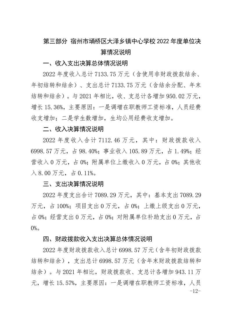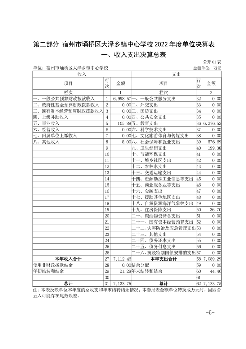 【学校经费决算】2022大泽乡镇中心校部门决算表