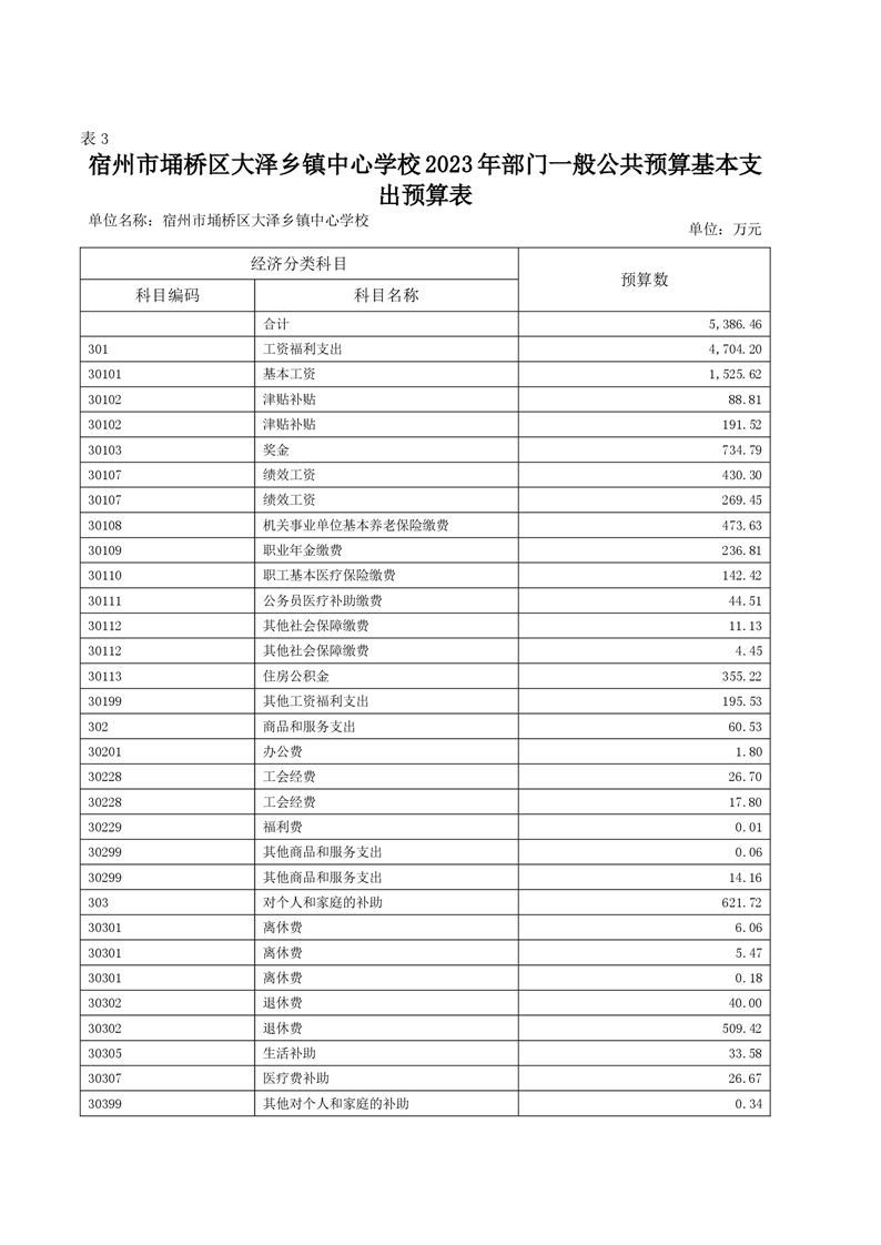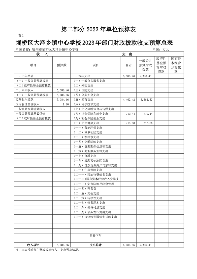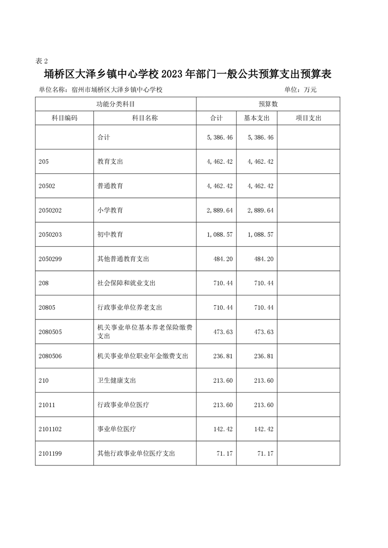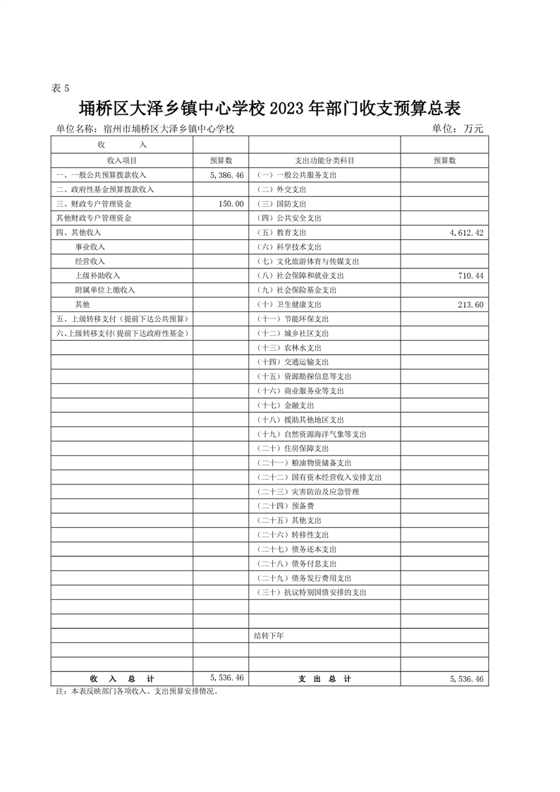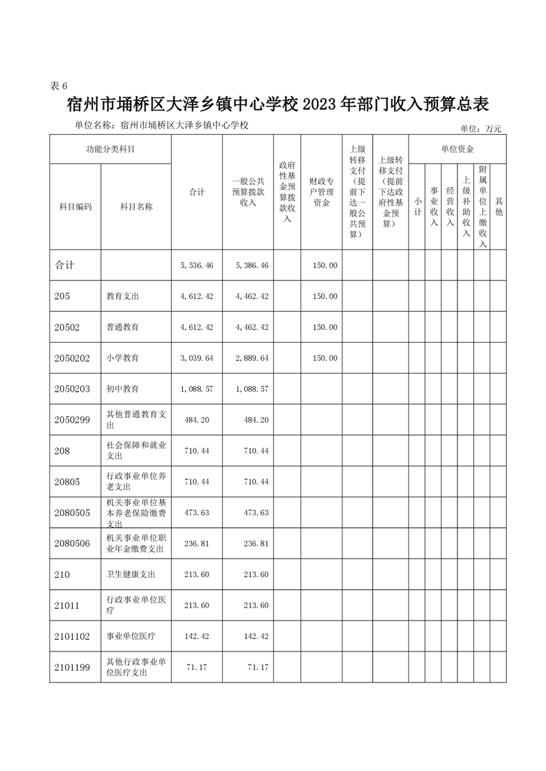 【学校经费预算】2023大泽乡镇中心校部门预算表