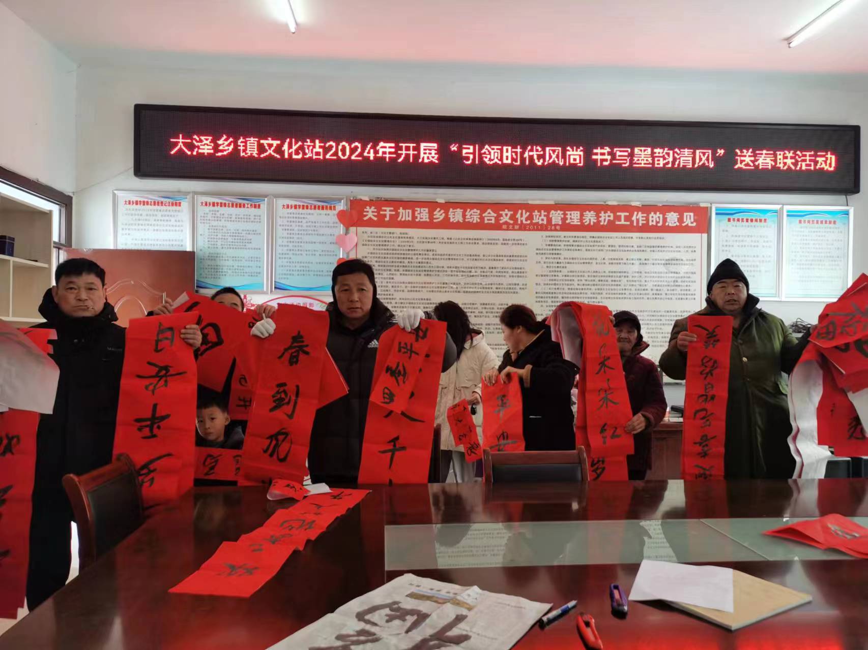 写春联、贴春联是我国春节传统习俗,也是辞旧迎新过大年的一种象征。在新春佳节即将来临之际,2月6日,大泽乡镇工会、妇联、文化站开展“引领时代风尚 书写墨韵清风”迎新春、春联展活动,为大泽乡镇职工送去美好的新年祝福。