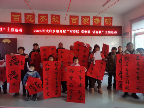大泽乡镇文化站2025年1月26日为即将到来的新春节日营造喜庆的氛围,将春联展,书画展,送春联联合起来打造一场集艺术性,互动性,公益性于一体的文化活动。为营造节日的浓厚气氛和满足人民群众精神文化生活需要,把浓浓的年味和新春的祝福送到群众的心坎上,收到群众的热烈欢迎。