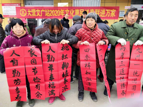 大营镇为营造吉祥如意的春节氛围,弘扬积极向善的道德风尚,把社会主义核心价值观传播到农村基层,将吉祥祝福送到千家万户,结合当前文明创建和脱贫攻坚工作,发挥乡村文化阵地作用,和大营镇人民政府开展此次为群众送春联活动