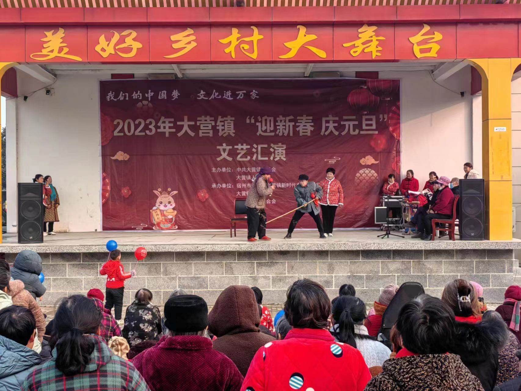 为深入学习贯彻习近平新时代中国特色社会主义思想,繁荣发展农村文化事业和文化产业,焕发乡风文明新气象,丰富全镇农民群众的精神文化生活。大营镇2023年12月28日下午在韩圩村广场举办2023年“迎新春 庆元旦”文艺汇演。