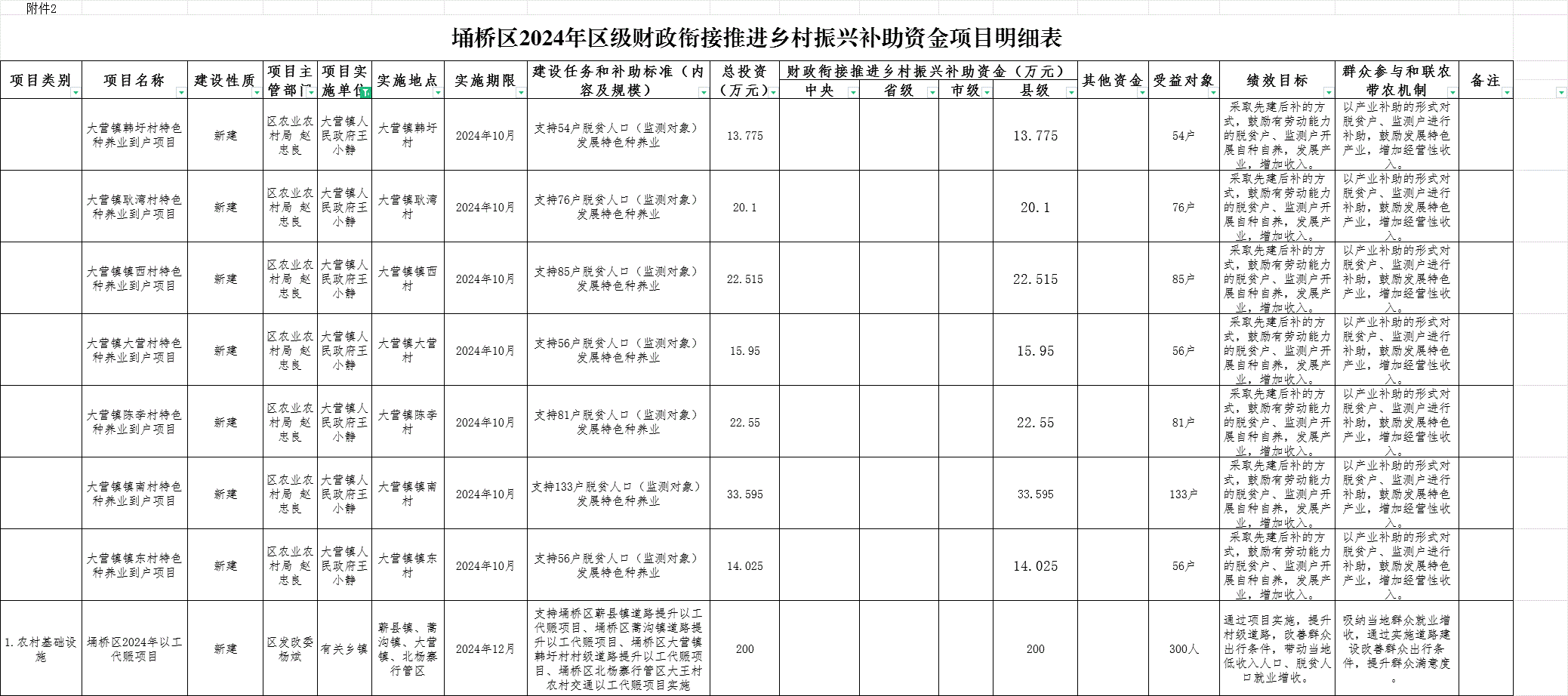 【资金项目】埇桥区2024年区级财政衔接推进乡村振兴补助资金项目明细表
