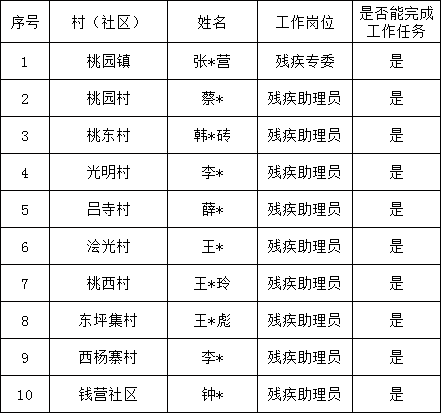 埇桥区桃园镇残疾助理员花名册