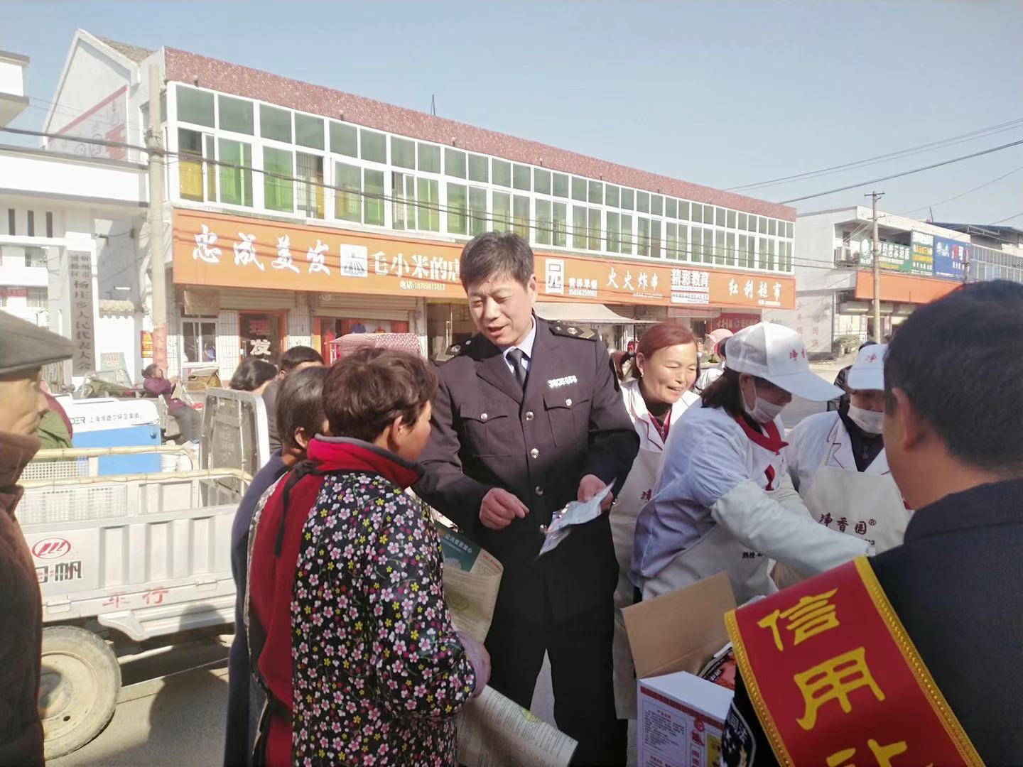 杨庄乡市场监督所所长陈民跃带队到杨庄大街给民众和商贩发放食品药品安全宣传单页,以提高民众的安全知识。
