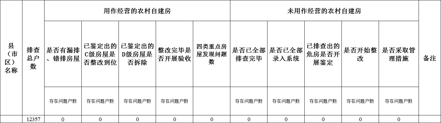 宿州市农村房屋安全隐患专项排查整治情况汇总表