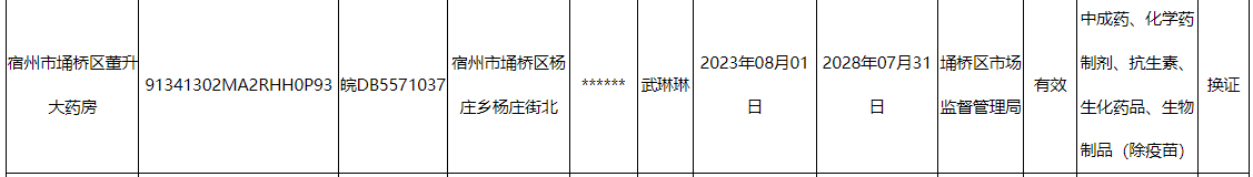 杨庄镇药品零售许可企业情况