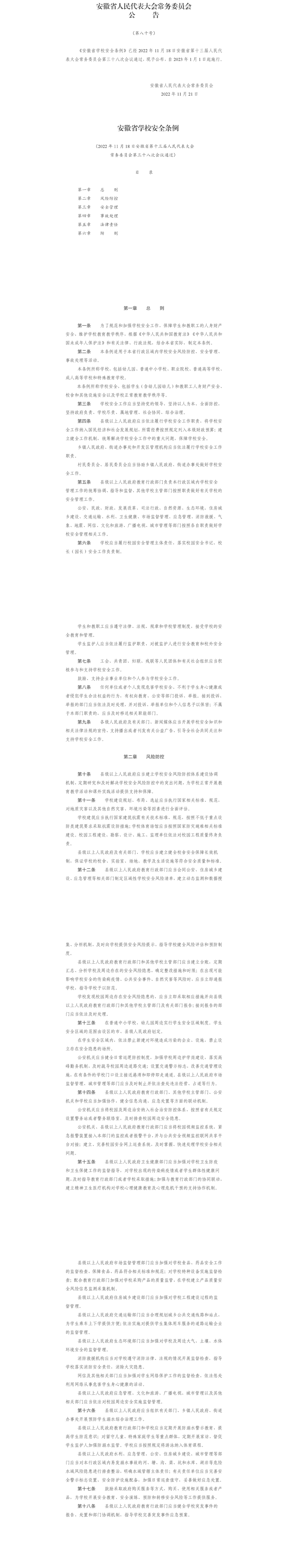 安徽省学校安全条例(政策法规)