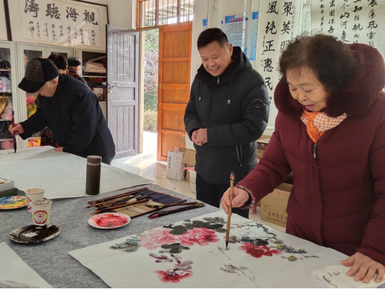 当天上午,书画家们冒着严寒驱车来到支河乡综合文化站,简单准备后,大家就开始挥毫泼墨,进行现场创作。乡长钮宏利、乡宣传委员沈忱到活动现场向书画家们表示欢迎并热情交流。一上午的时间,各位书画家创作了二十余副书画作品,笔墨酣畅,画面精美,寓意深刻,充分表达了书画家们对埇桥区乡村建设取得成绩的充分肯定和对未来生活的美好祝愿。活动现场还书写了春联和福字,给当地群众送去新春的祝福。活动现场也吸引了当地的书画爱好者前来观看,广大书画爱好者们相互交流、相互探讨,得到了大家的一致好评。