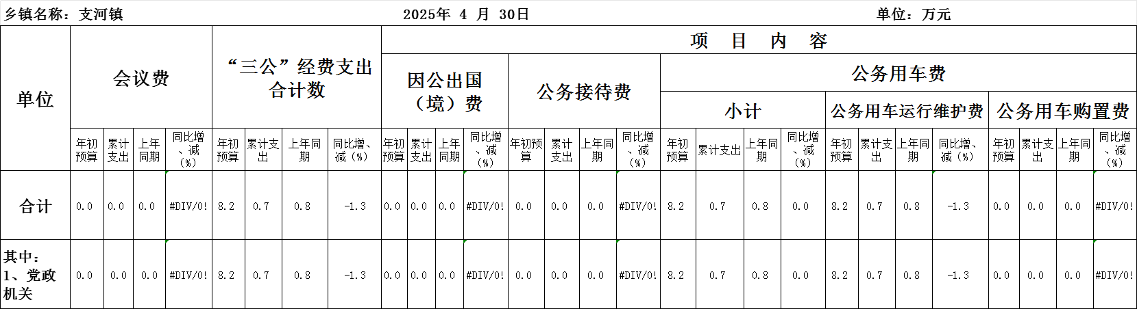 支河镇2025年4月“三公”经费和会议费支出情况统计表