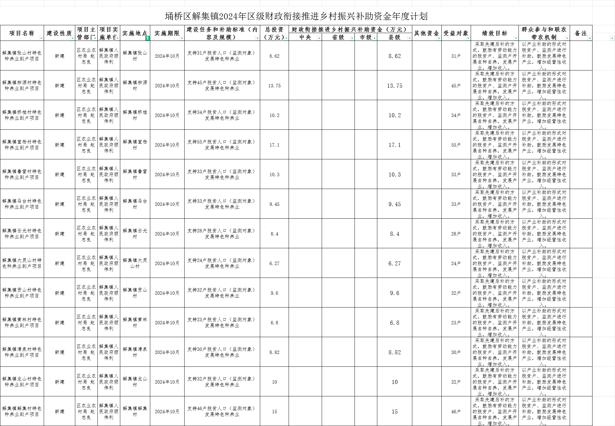 埇桥区解集镇2024年区级财政衔接推进乡村振兴补助资金年度计划