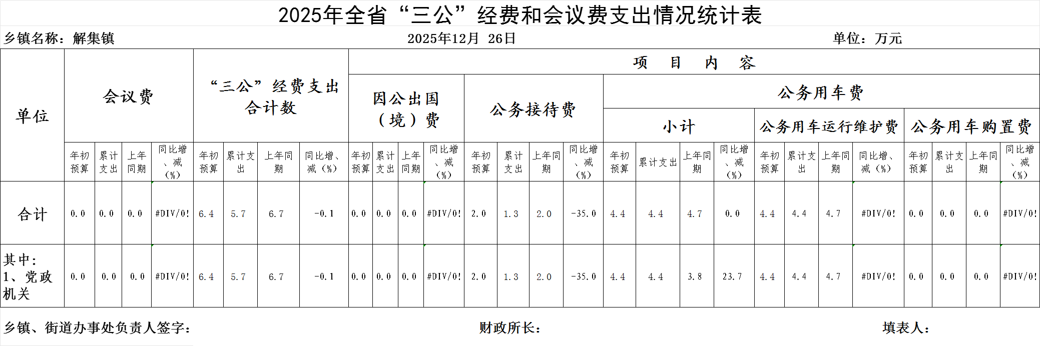 解集镇2025年12月“三公”经费全口径支出情况统计表
