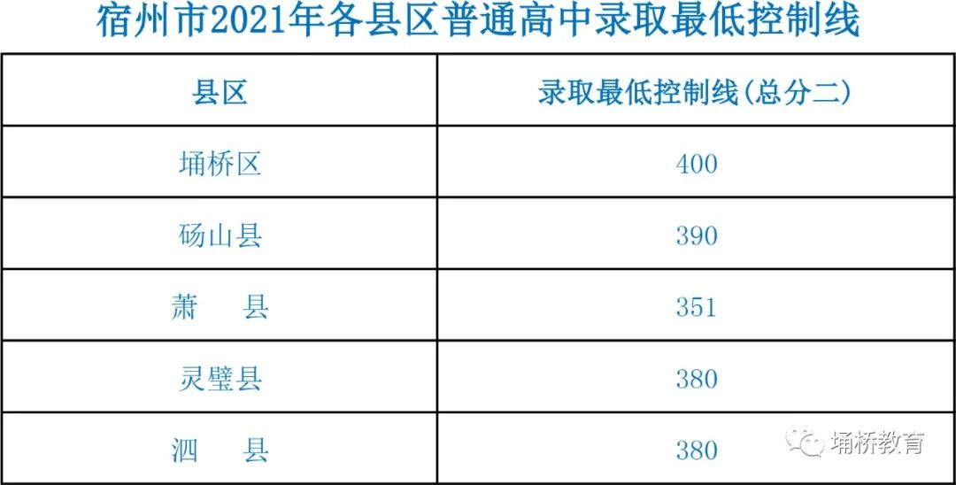 【招生信息】宿州市2021年各县区普通高中录取最低控制线