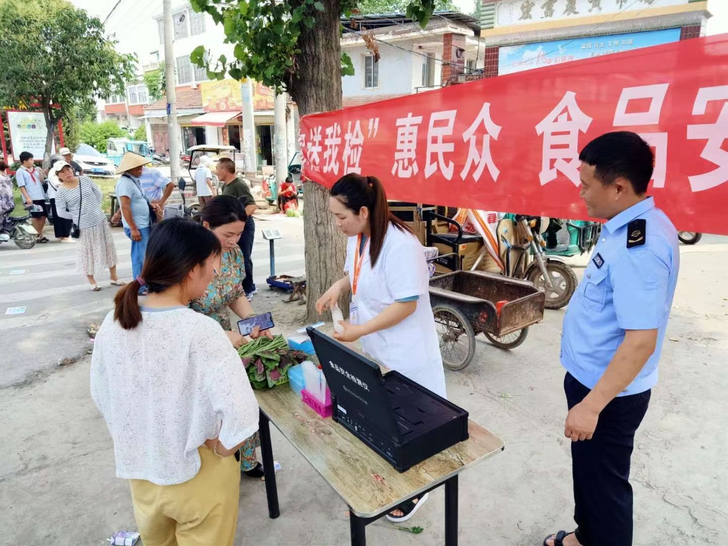 当天举办的食品安全“你送我检”进市场活动同样吸引了群众热情参与。通过亲身参与“你送我检”活动,村民们纷纷表示对食品安全工作有了更深入的了解。