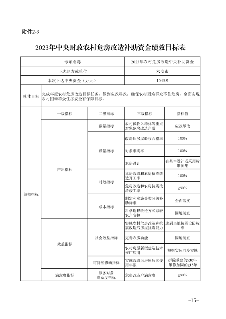 【文件政策】安徽省财政厅安徽省住房和城乡建设厅关于下达2023年中央财政农村危房改造补助资金的通知
