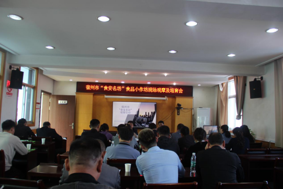 会前,参会人员前往埇桥区“杨老六面点加工部”进行了实地观摩,小作坊负责人对工艺布局、设施设备、人员管理、食品安全制度落实等进行了详细讲解。参训人员表示通过观摩活动,学习到了小作坊提升的关键环节和质量管理要点等,收获满满,对成为“食安名坊”更有信心。