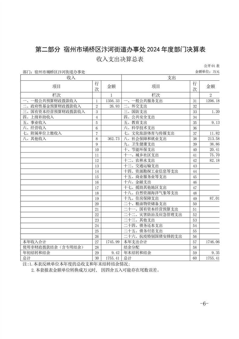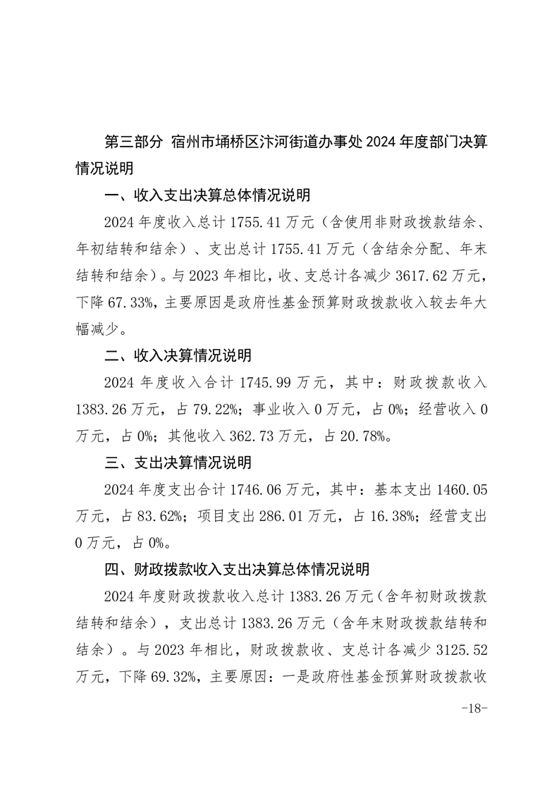 【部门决算】宿州市埇桥区汴河街道2024年度部门决算
