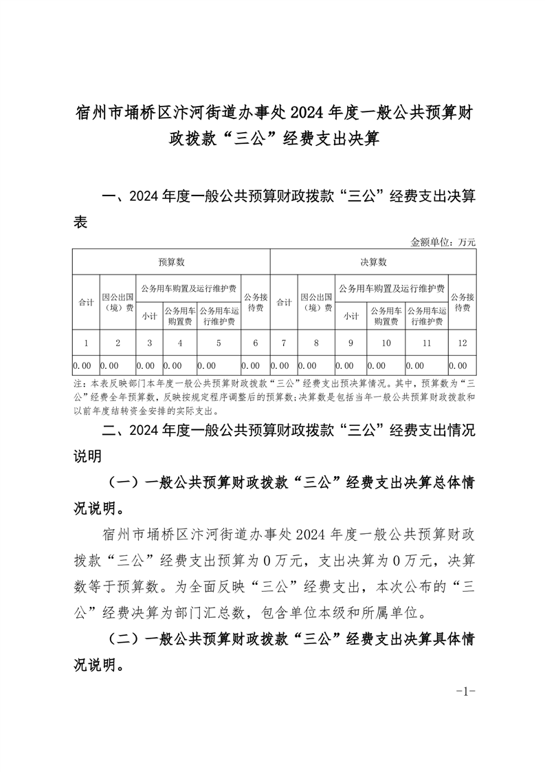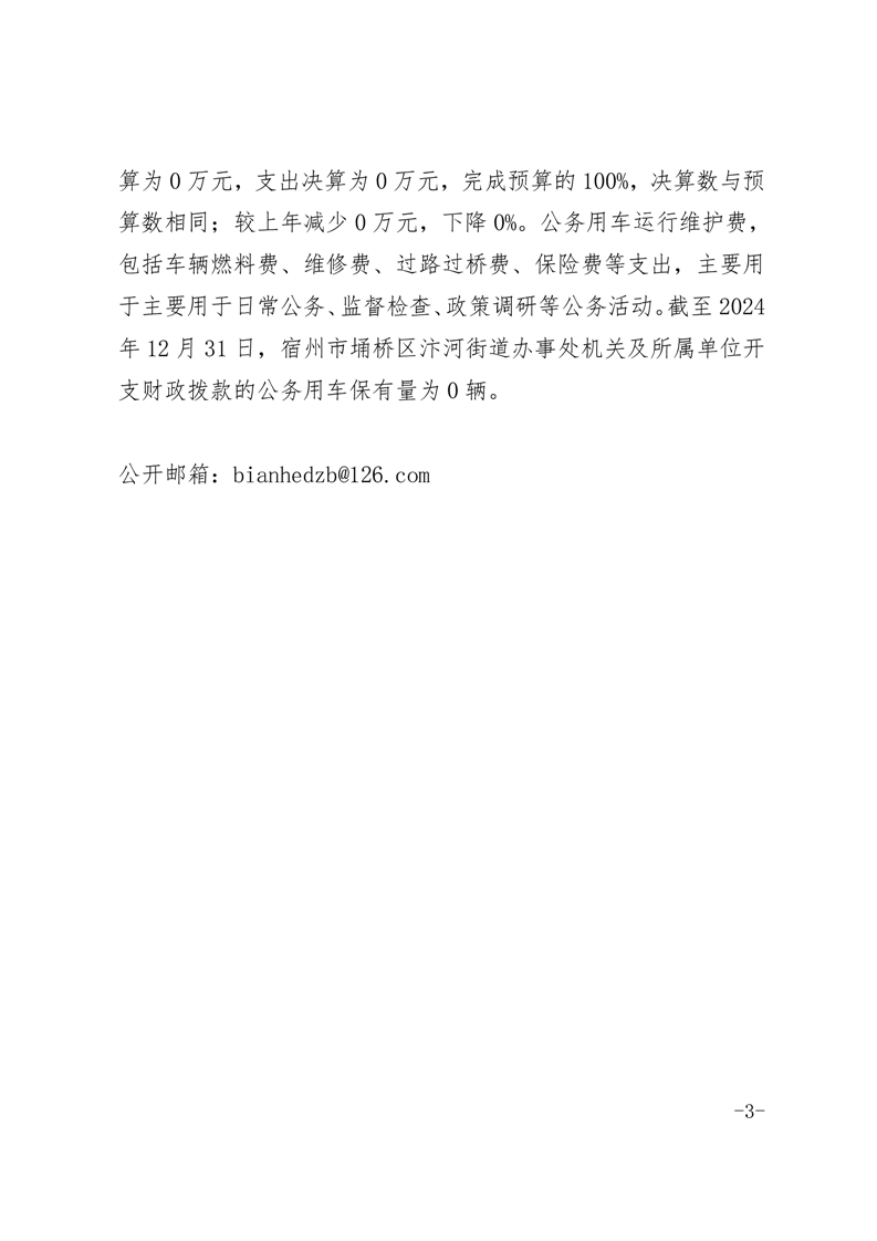 【年度决算】宿州市埇桥区汴河街道办事处2024年度一般公共预算财政拨款“三公”经费支出决算