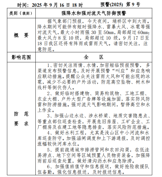 【预警信息】强降水和强对流天气防御预警