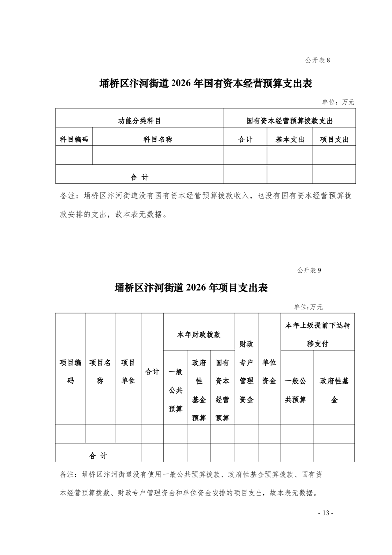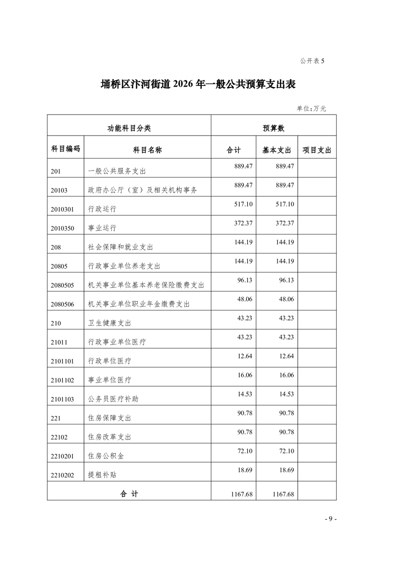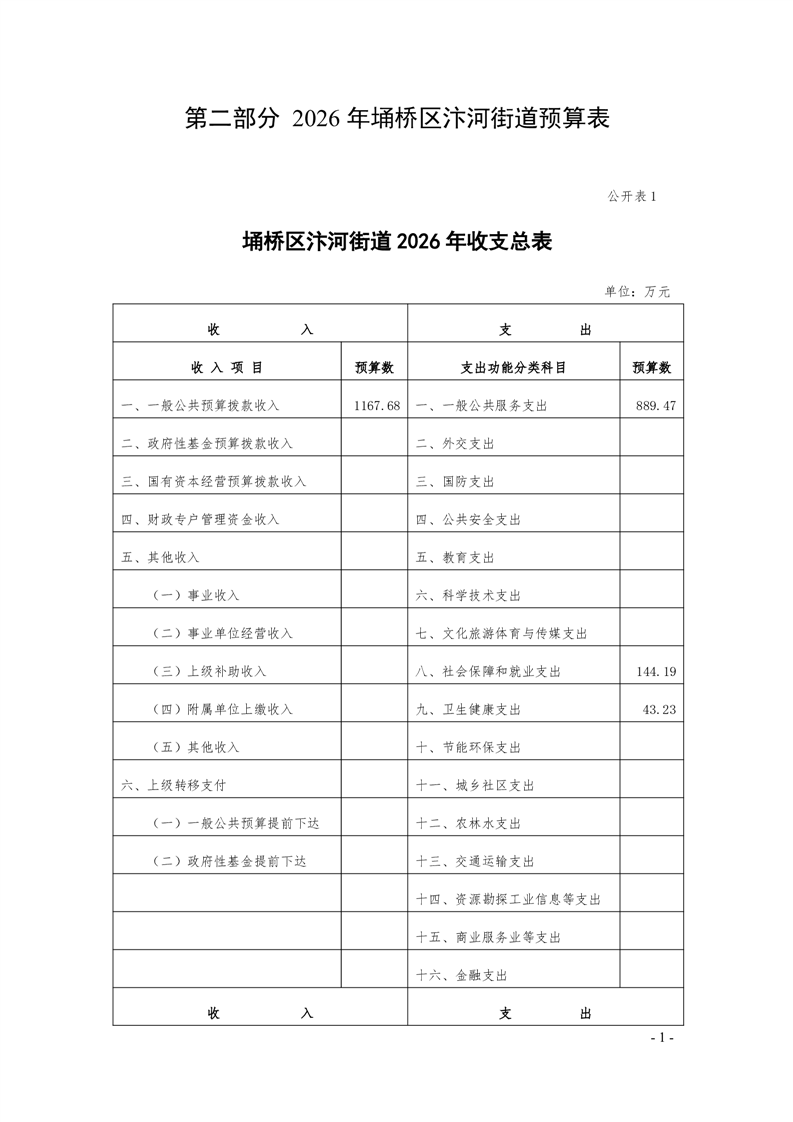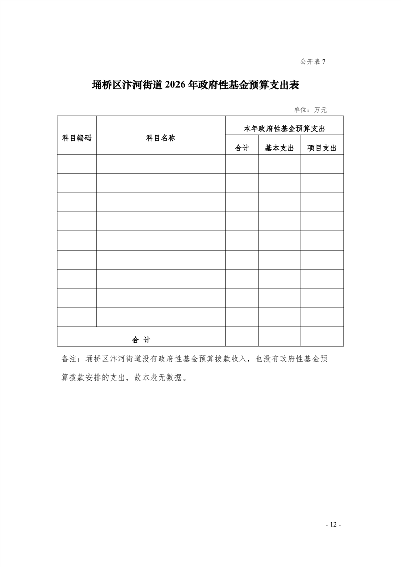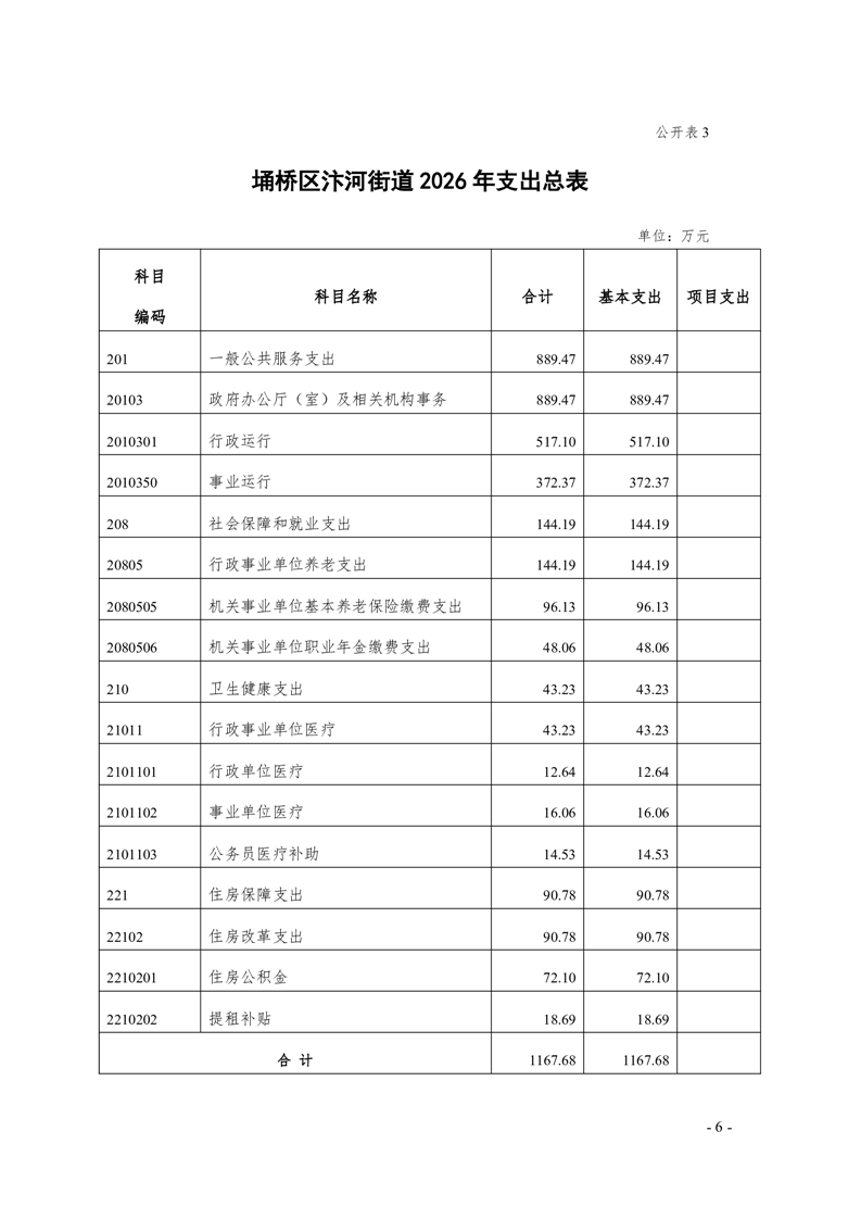 【部门预算】汴河街道办事处2026年部门预算公开表