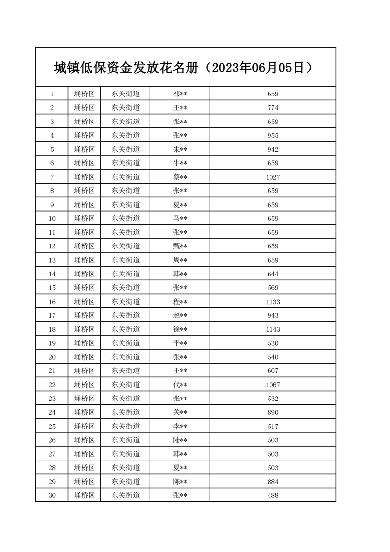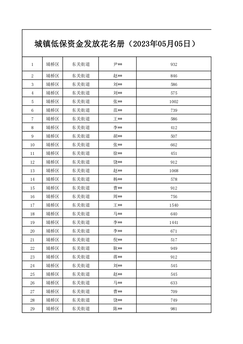 【城乡低保】东关街道2023年第二季度城乡低保发放花名册