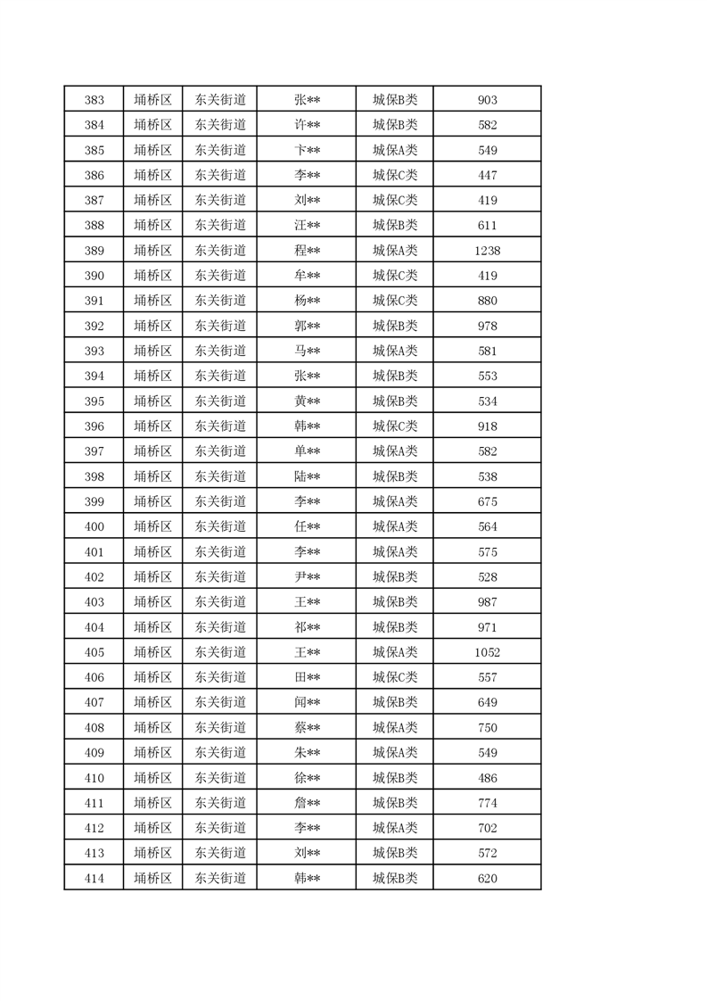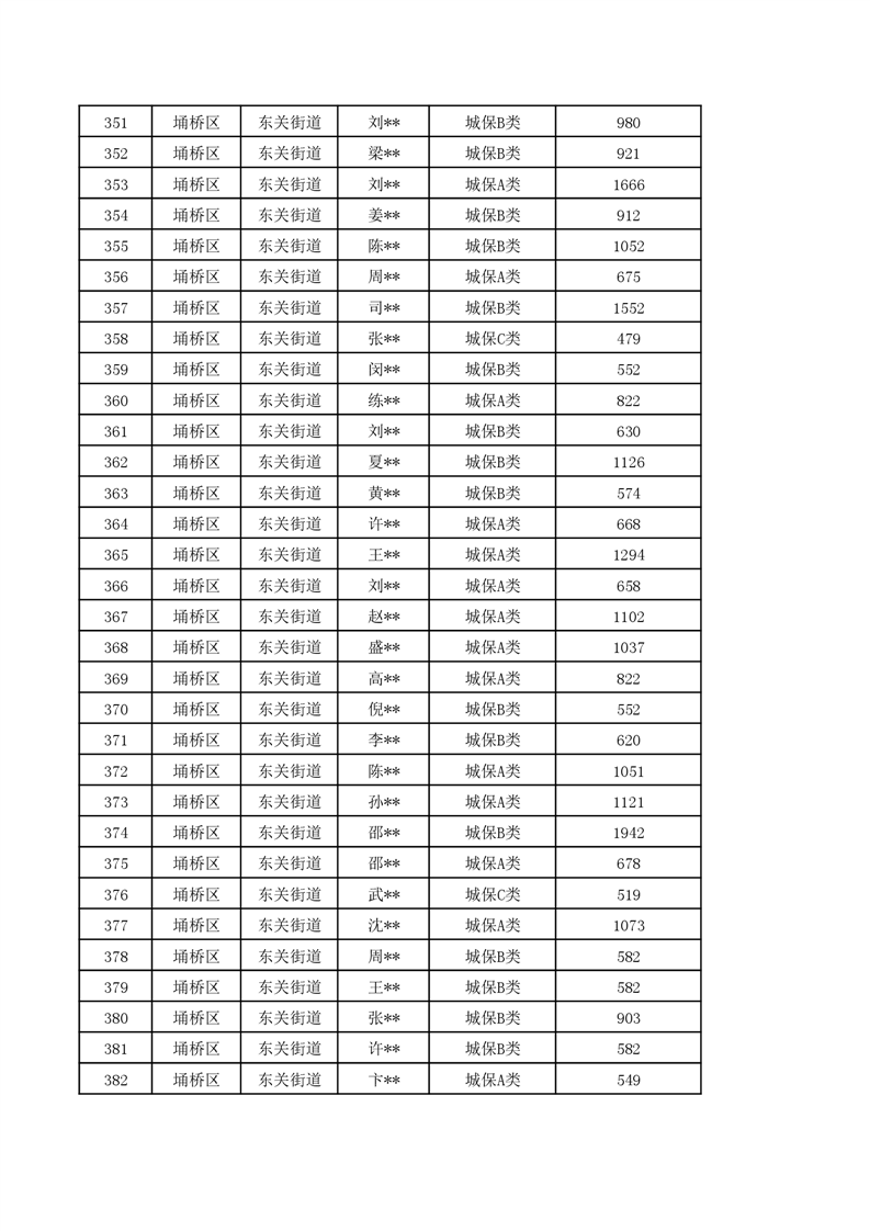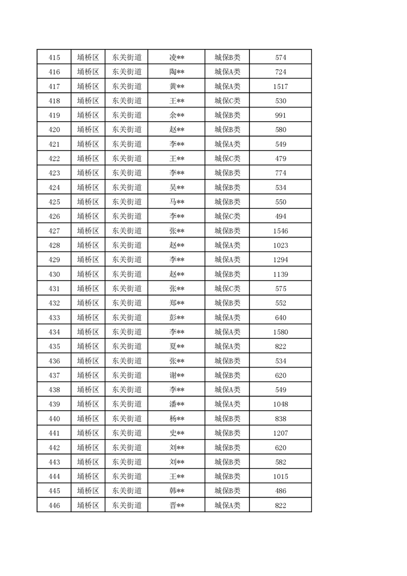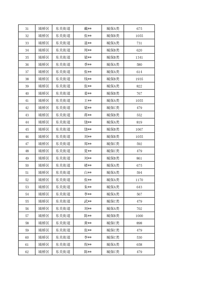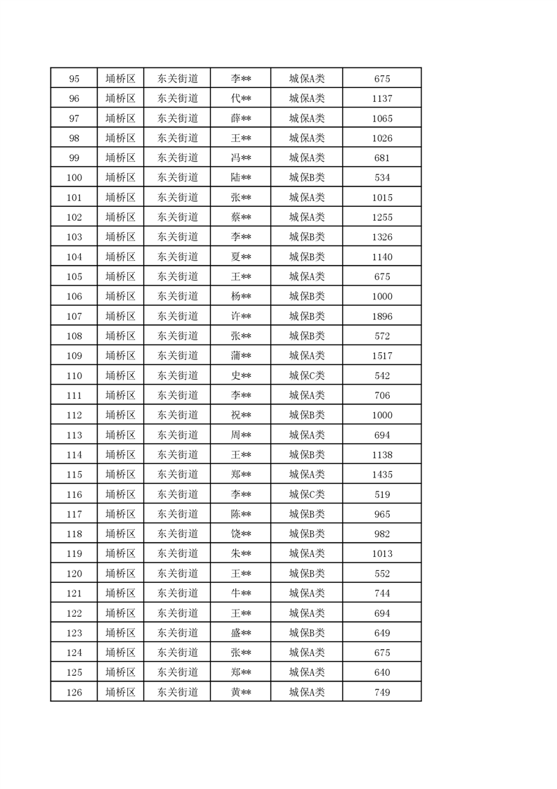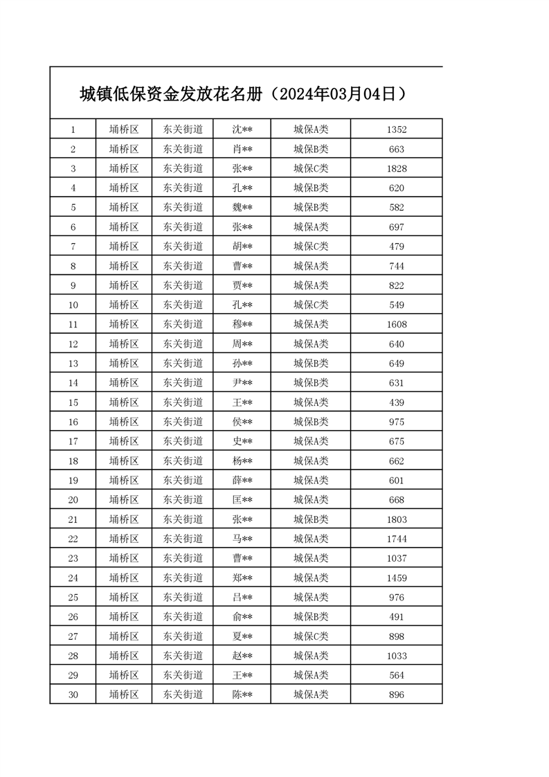【城乡低保】东关街道2024年第一季度城乡低保发放花名册