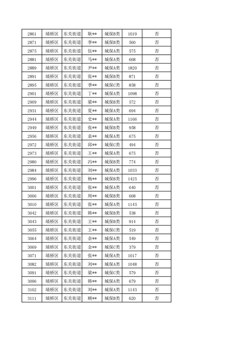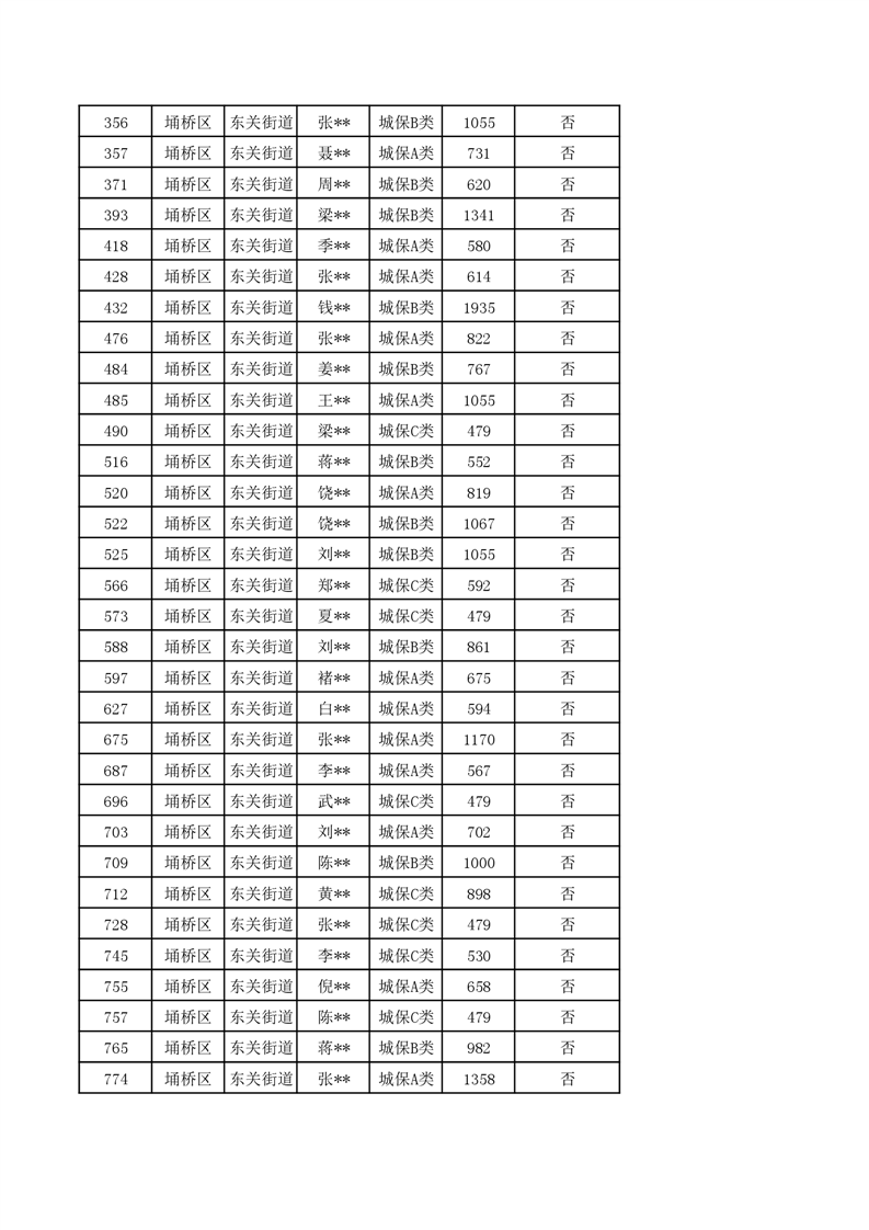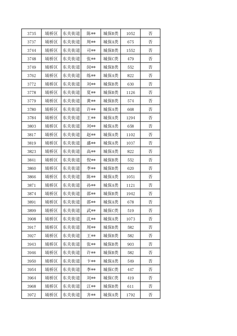 【城乡低保】东关街道2024年第二季度城乡低保发放花名册