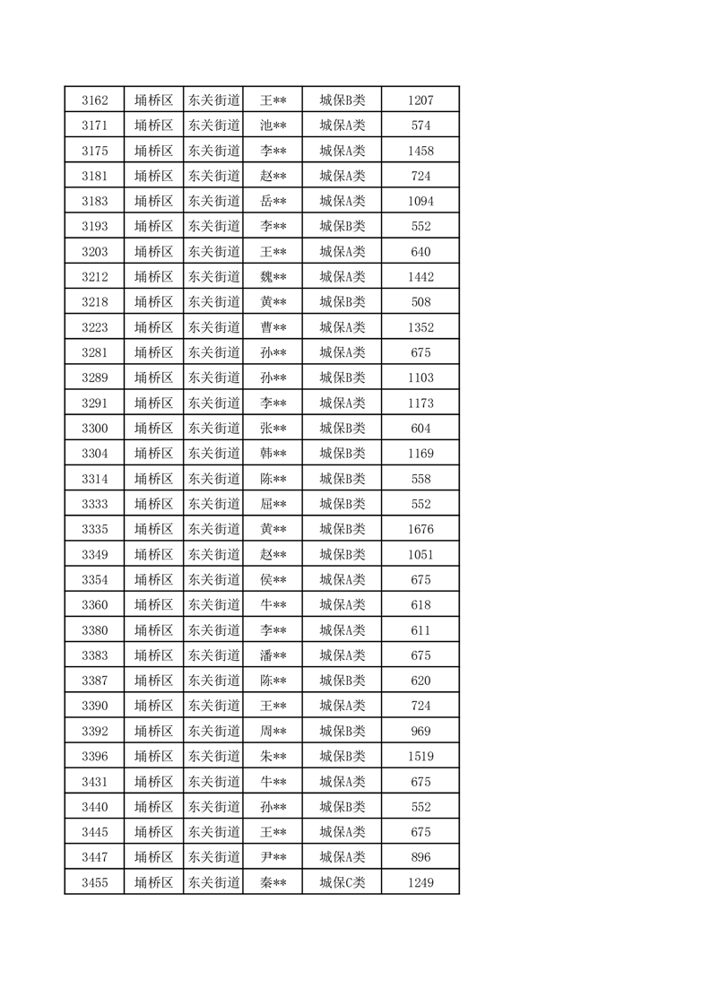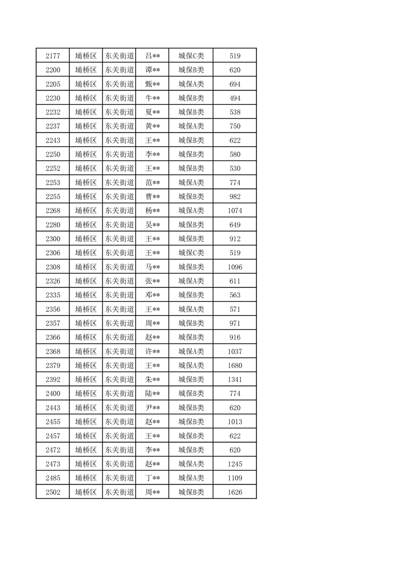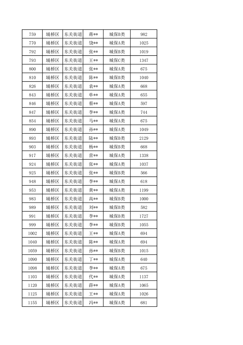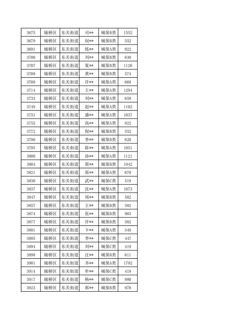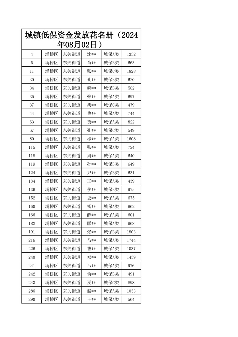 【城乡低保】东关街道2024年第三季度城乡低保发放花名册