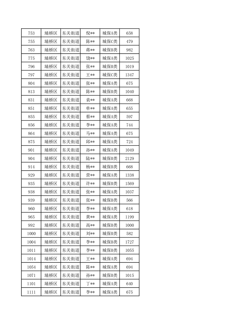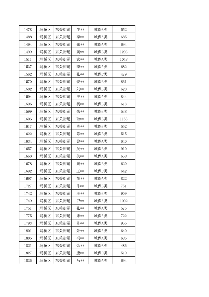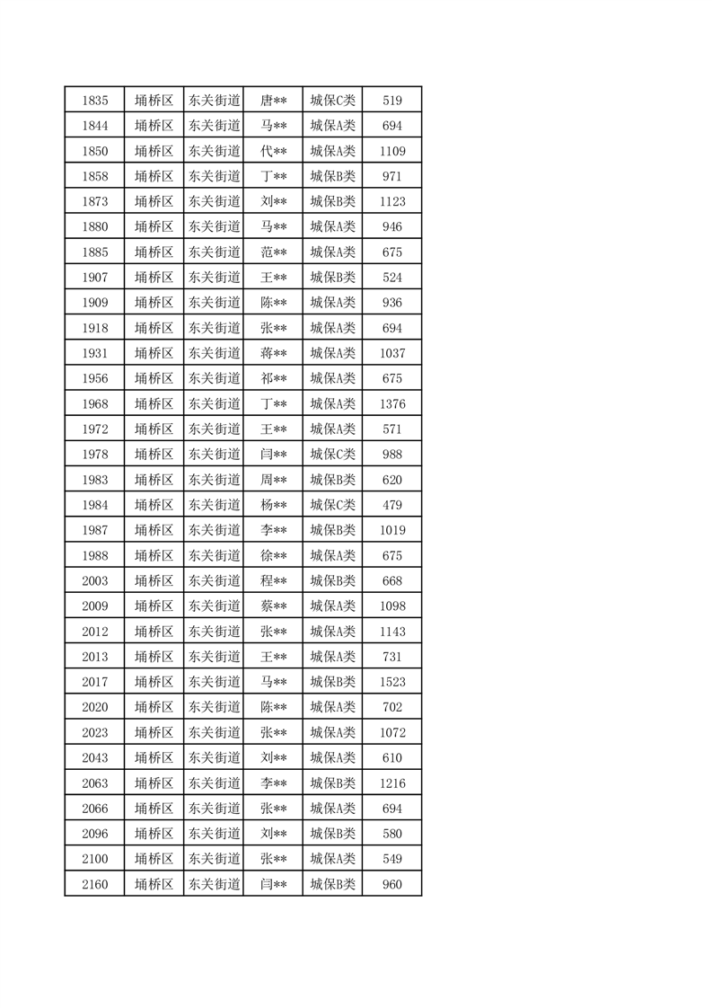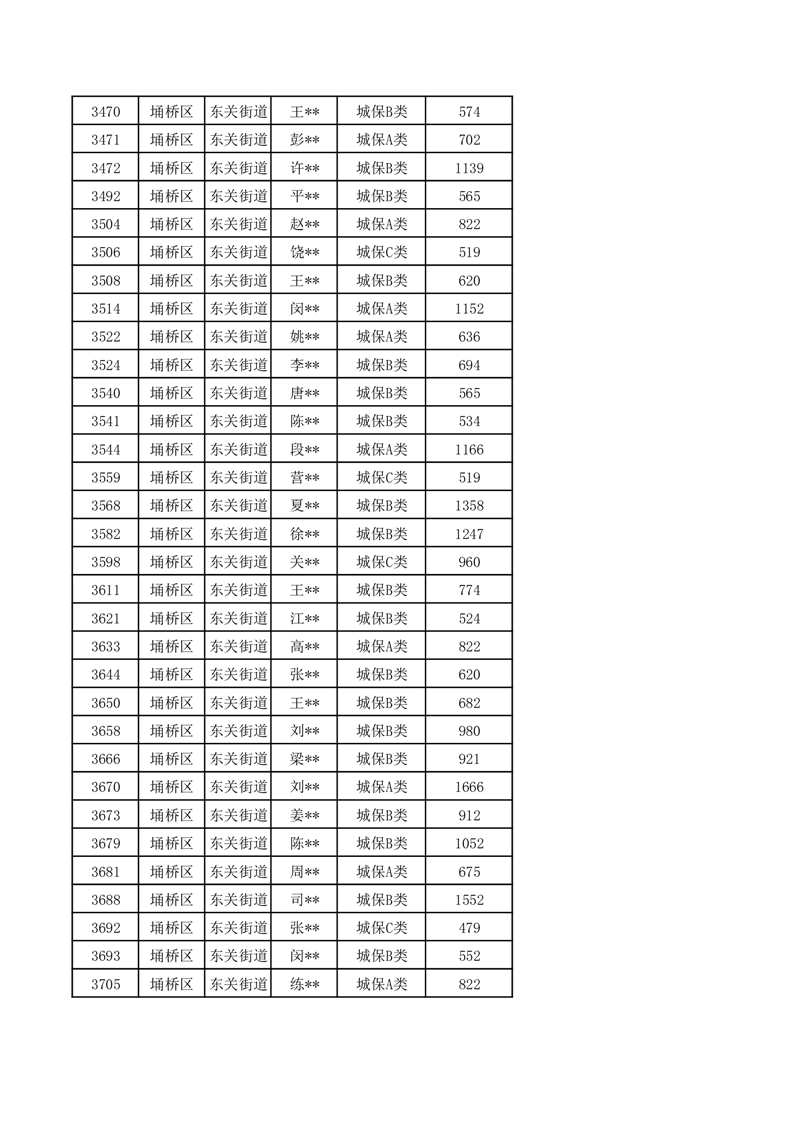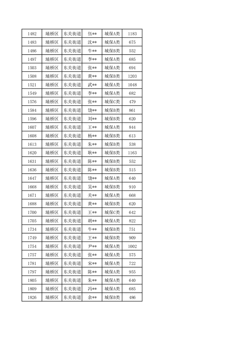 【城乡低保】东关街道2024年第三季度城乡低保发放花名册