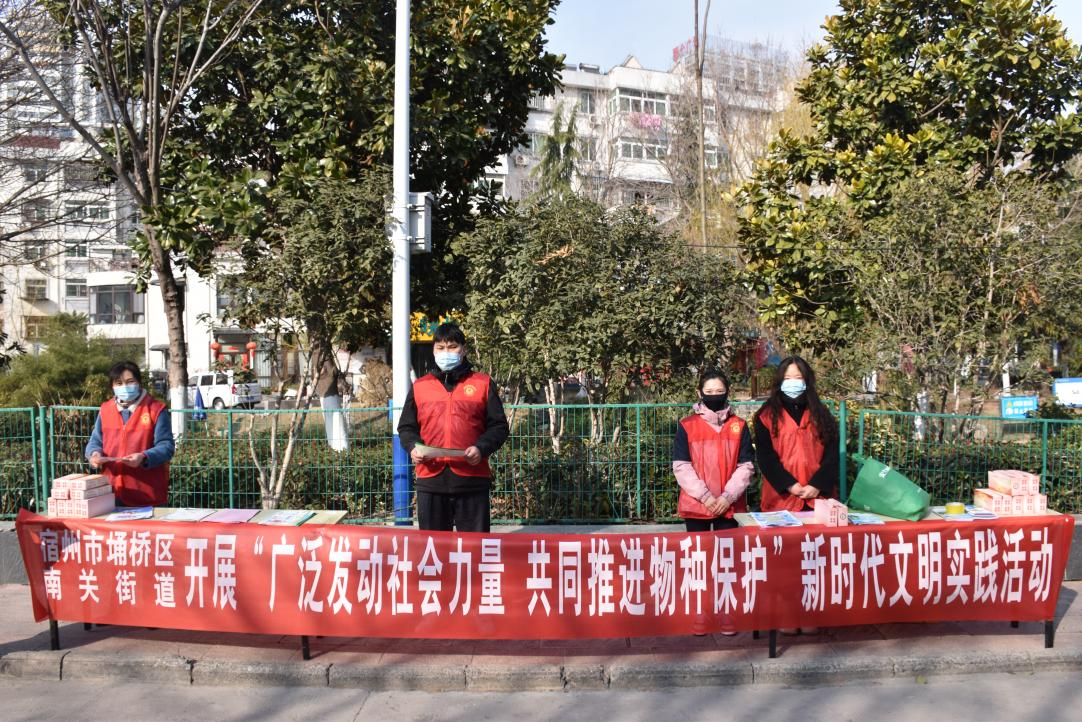 为了进一步加强野生动植物保护,维护生物多样性,大力营造野生动植物保护的良好社会氛围,3月2日,宿州市埇桥区南关街道在武夷商业城开展“广泛发动社会力量 共同推进物种保护”新时代文明实践活动。