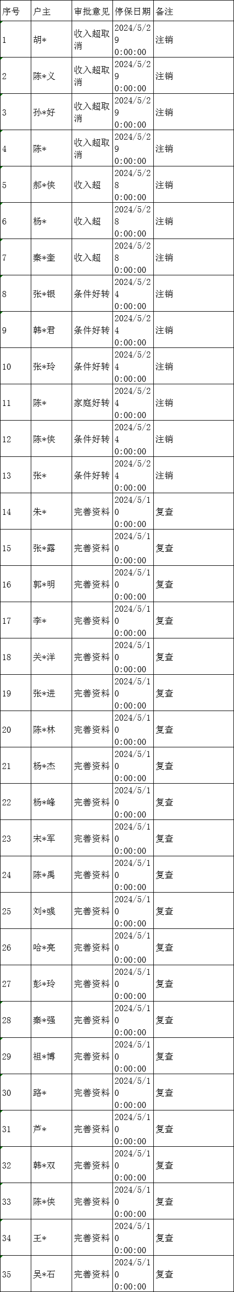 西关街道2024年5月五保户补贴资金清册表