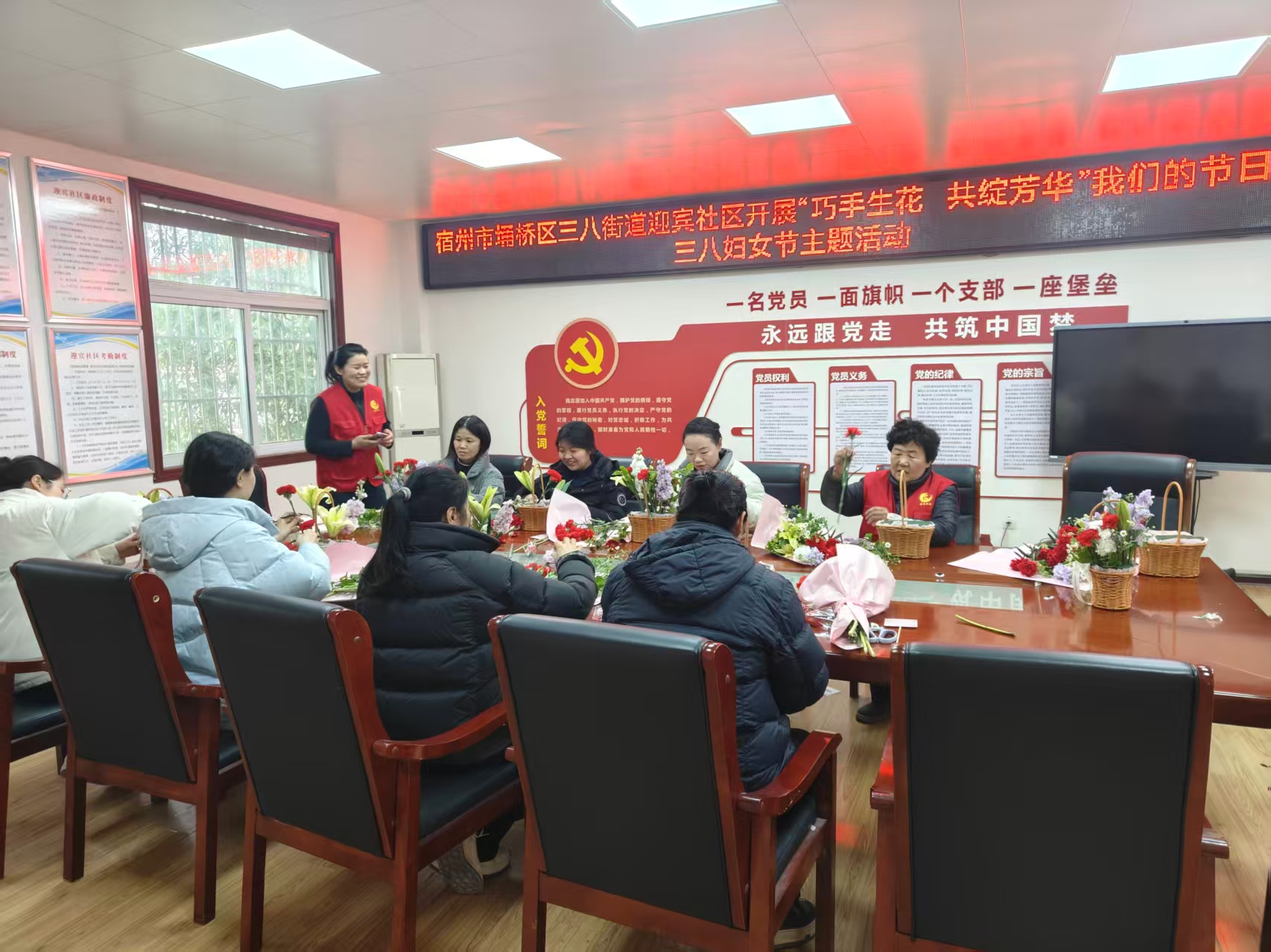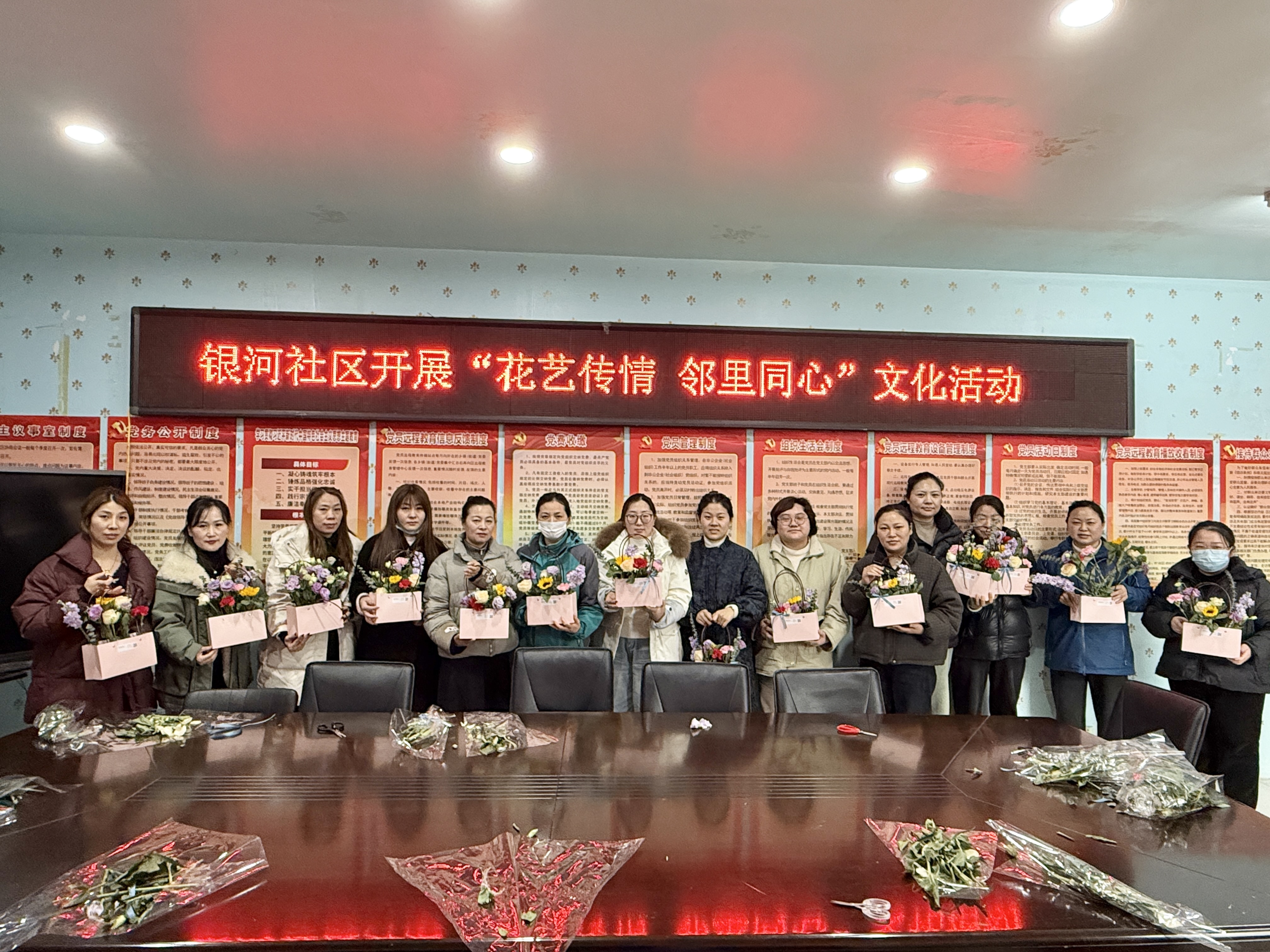 春风送暖,繁花吐蕊。在“三八” 国际妇女节来临之际,三八街道各社区将插花艺术与节日祝福相结合,开展了一场场浪漫雅致的插花活动。玫瑰的娇艳、康乃馨的温婉、满天星的灵动在女性居民指尖绽放,大家在花香氤氲中学习技艺、交流心得,用一束束亲手制作的花艺作品,定格春日美好,共度温馨节日。