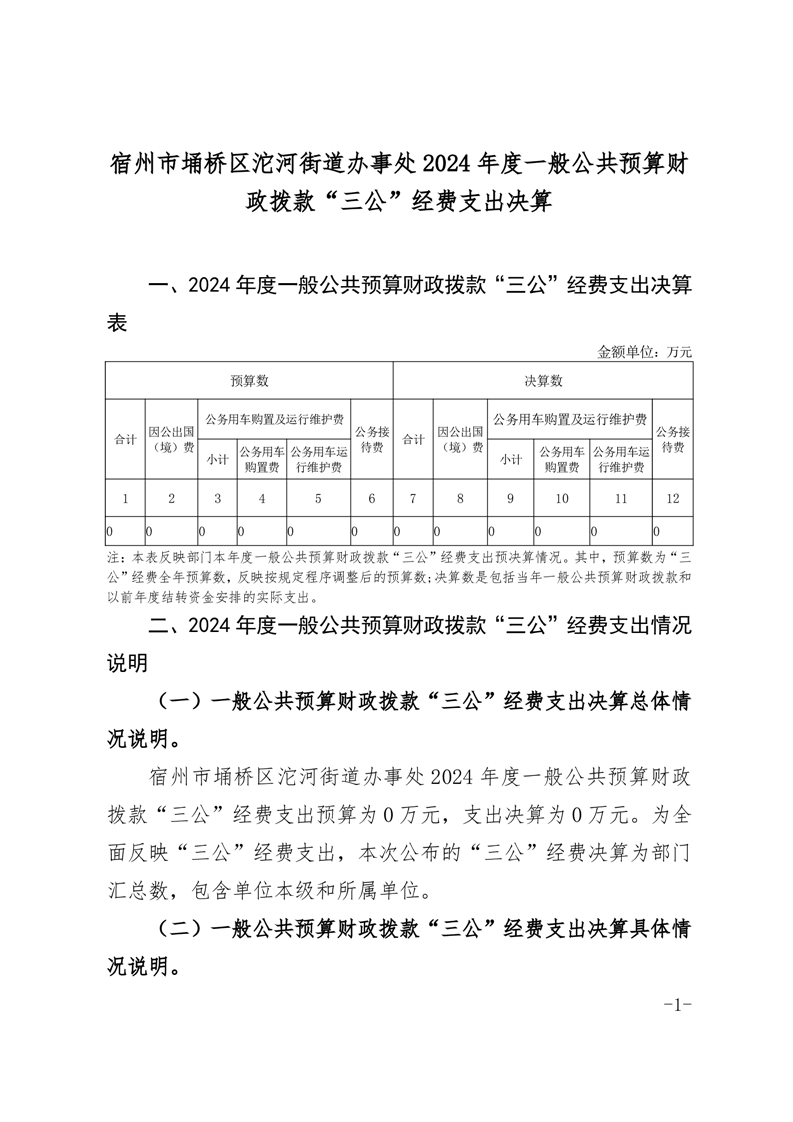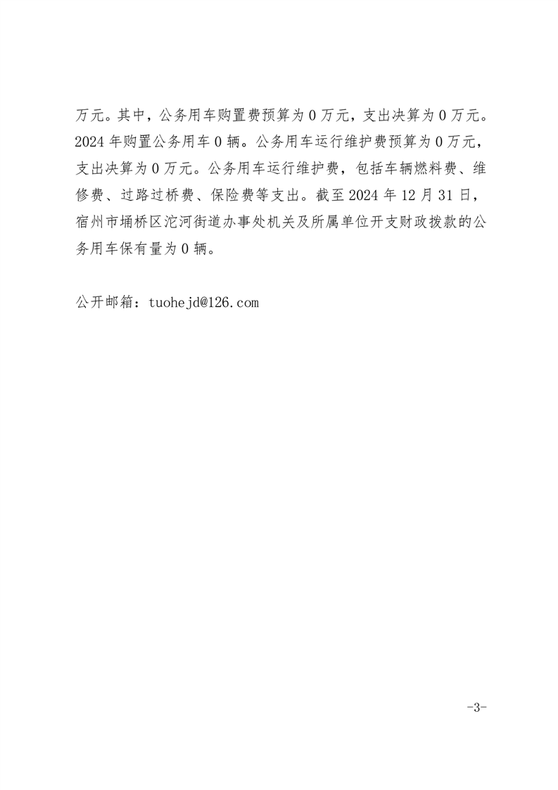 埇桥区沱河街道办事处2024年一般公共预算“三公”经费决算