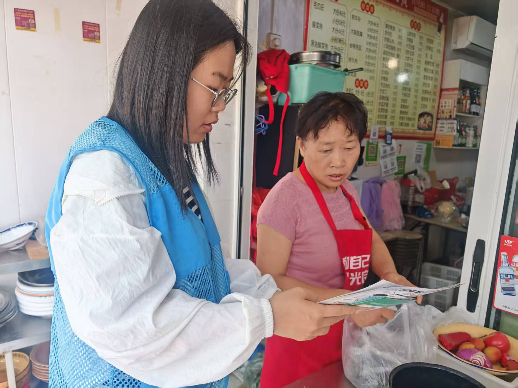 为持续强化餐饮服务提供单位从业人员食品安全管理意识,进一步落实食品安全主体责任,7月11日,韩孜社区工作人员开展了餐饮单位“两库一平台”食品安全宣传推广活动。