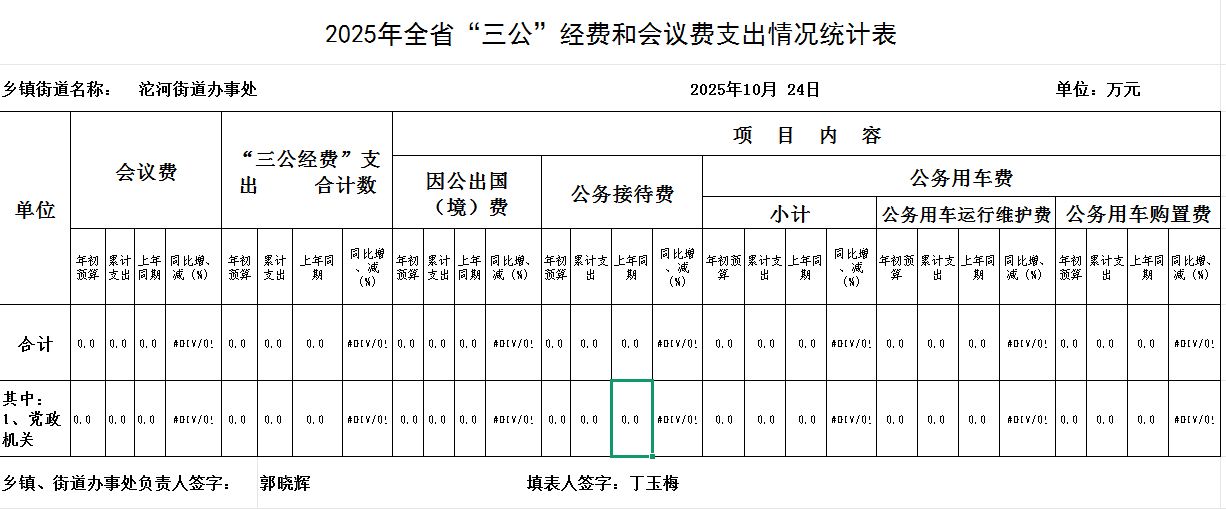 沱河街道办事处2025年10月“三公”经费统计表