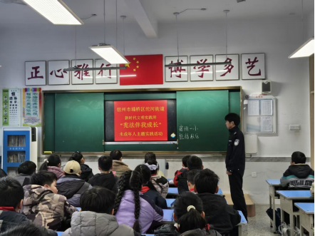 本次活动参与者宿州一小恒福校区四(1)班全体师生43人,特邀辖区民警担任法治主讲人,全程围绕宪法知识宣讲、趣味互动问答、感悟分享展开,时长40分钟,流程紧凑有序,内容贴合未成年人认知特点,整体氛围热烈融洽。以主题活动为载体,丰富了沱河街道新时代文明实践所法治服务内容,扩大了社区法治宣传覆盖面,推动法治文明理念从实践所延伸至家庭,既为未成年人筑牢法治安全防线,也为构建法治街道、文明街道注入新动力,助力新时代文明实践工作提质增效。